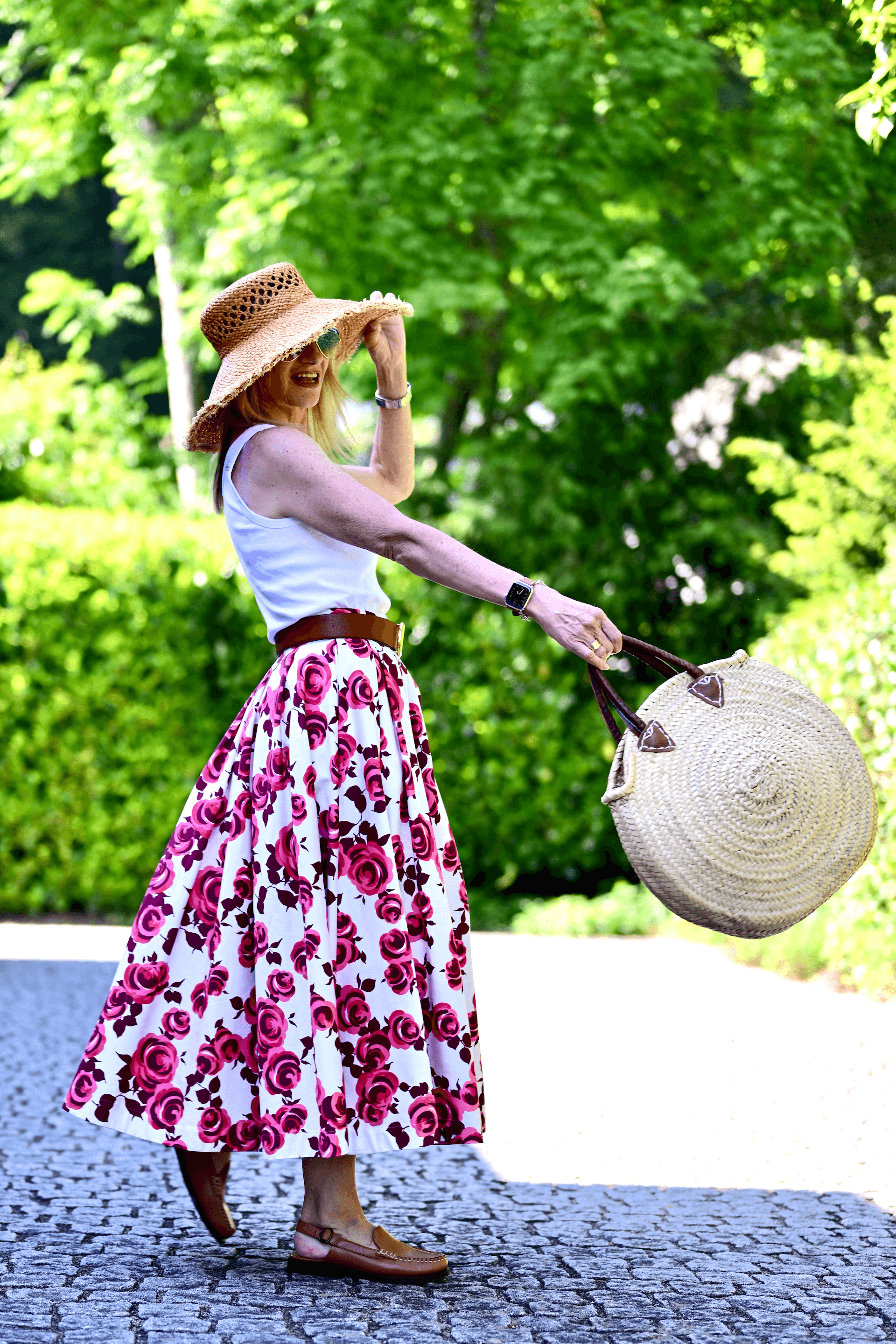 I’ve deliberately chosen brown accessories here with the slingback mules, watch strap and belt all matching.