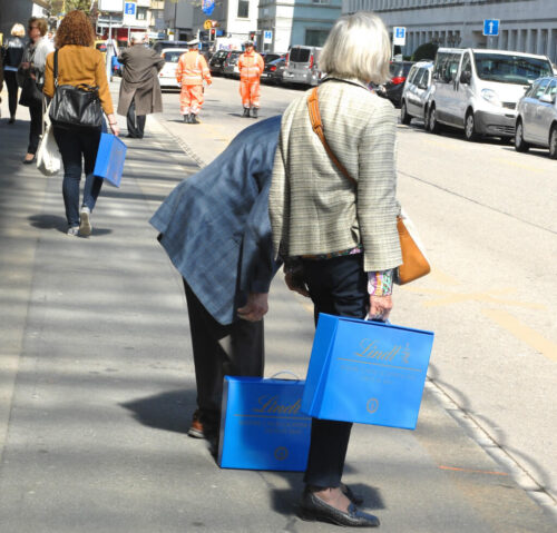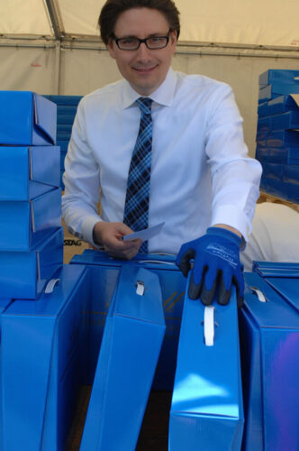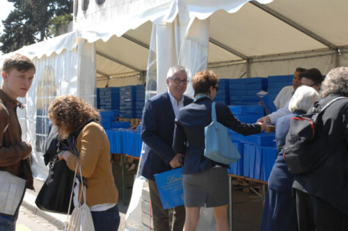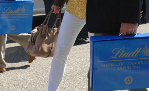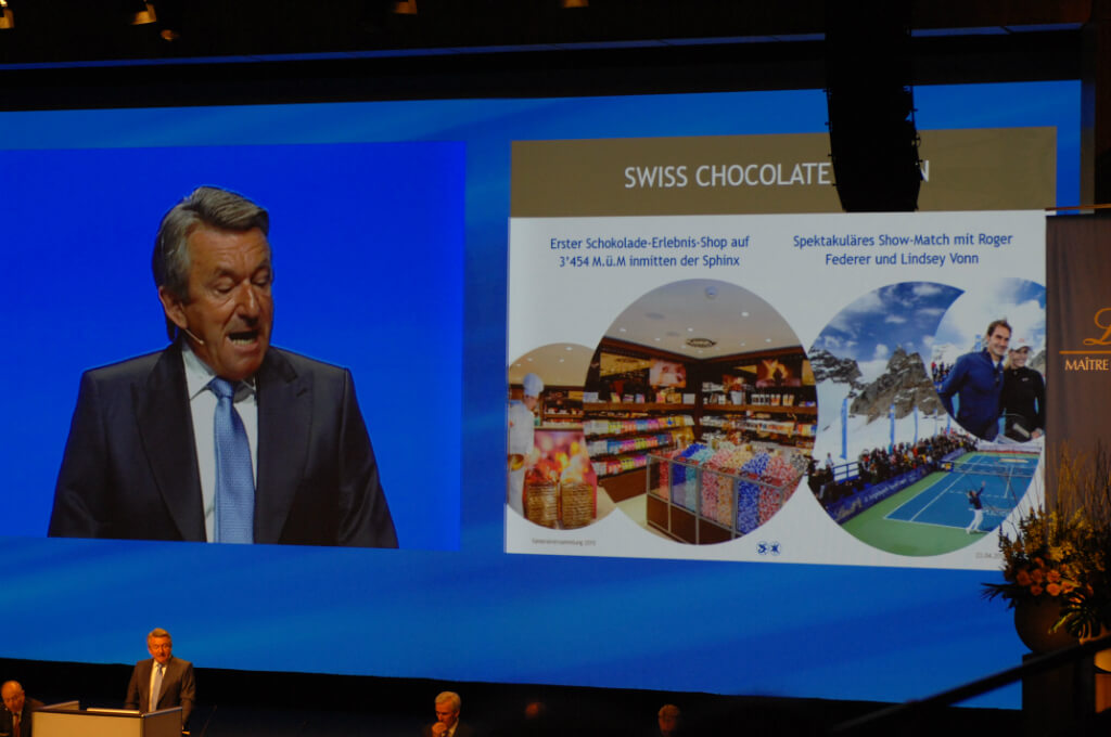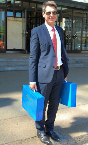 2’958 Blue Suitcases, each containing 5kg chocolate distributed at Lindt & Sprügli AGM this morning.