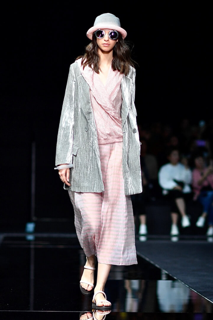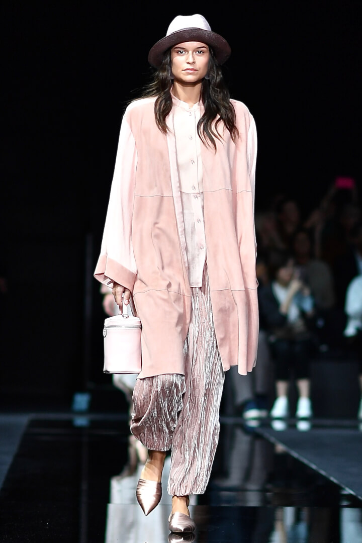 A touch of pastel pink teamed up with grey o the Armani Spring/Summer 2020 runway.
