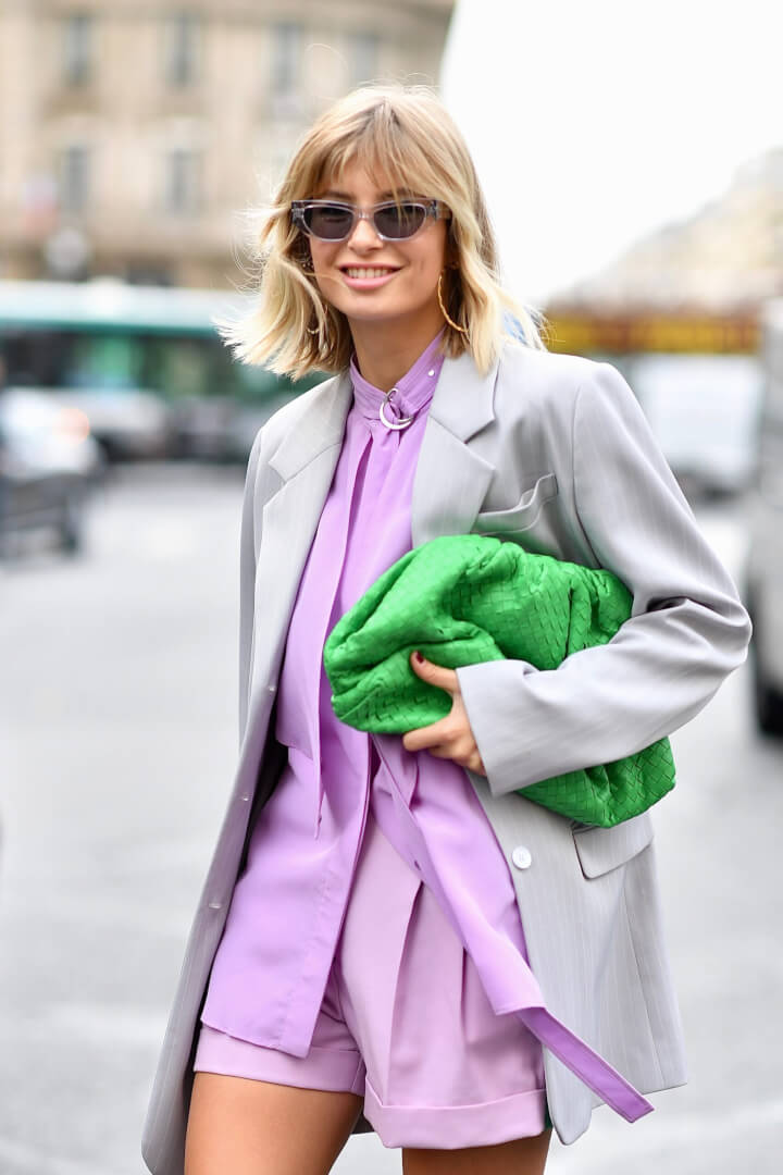 Here the pastel lilac has been offset with a bright green bag for impact.