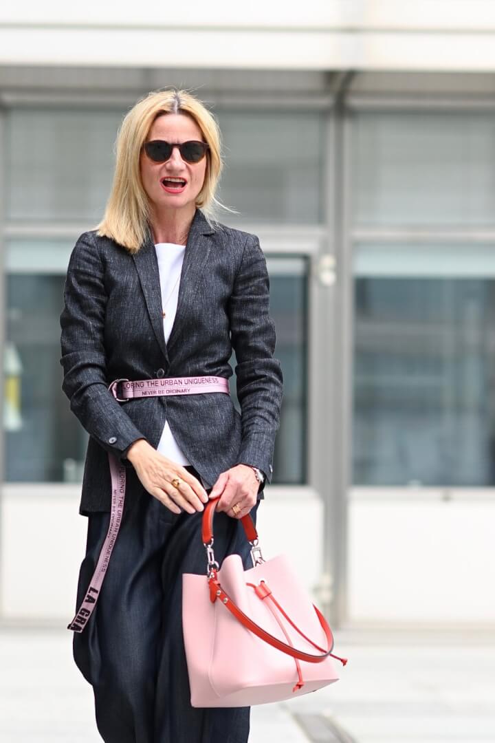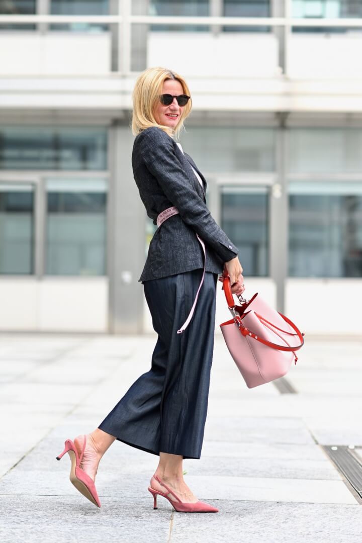 The first trick is to start with accessories. If you’re going to wear classic blue and white to the office, dare to have a little play with your shoes and bag. I chose pink for todays look. Partially because I seem to be in a pink frame of mind this season and partially because it adds a bit of fun to a serious outfit.