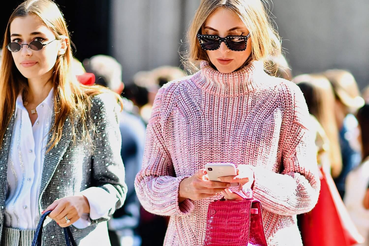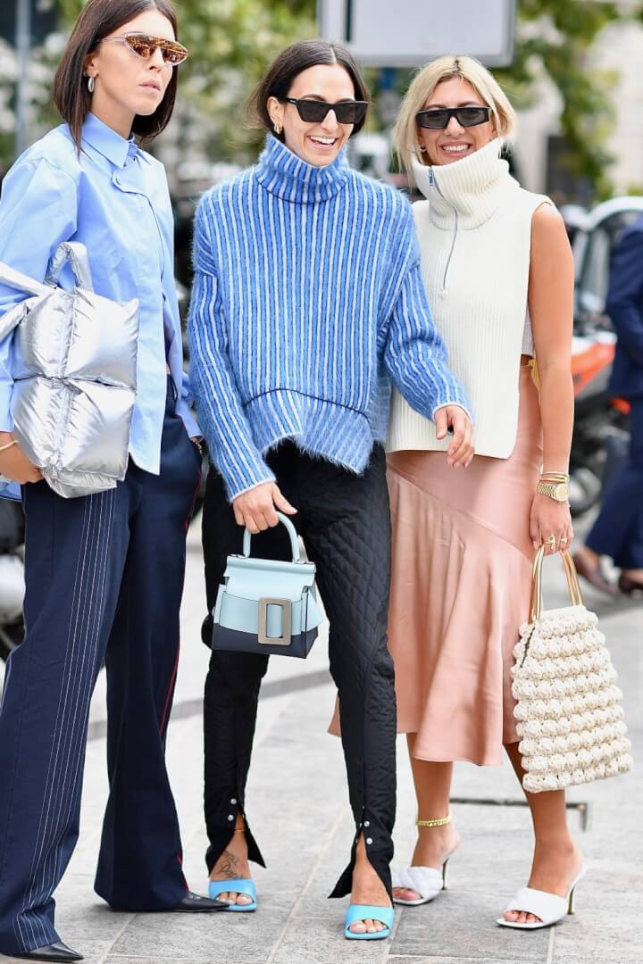 The multiple bag look is also hot on the trend list. Including small bags worn on boots or even shoes.