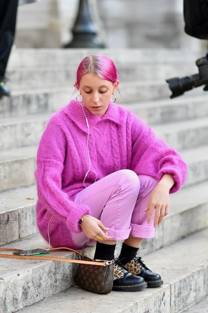 Here’s the question… would you change your hair colour for your sweater? It does look cute on this woman!