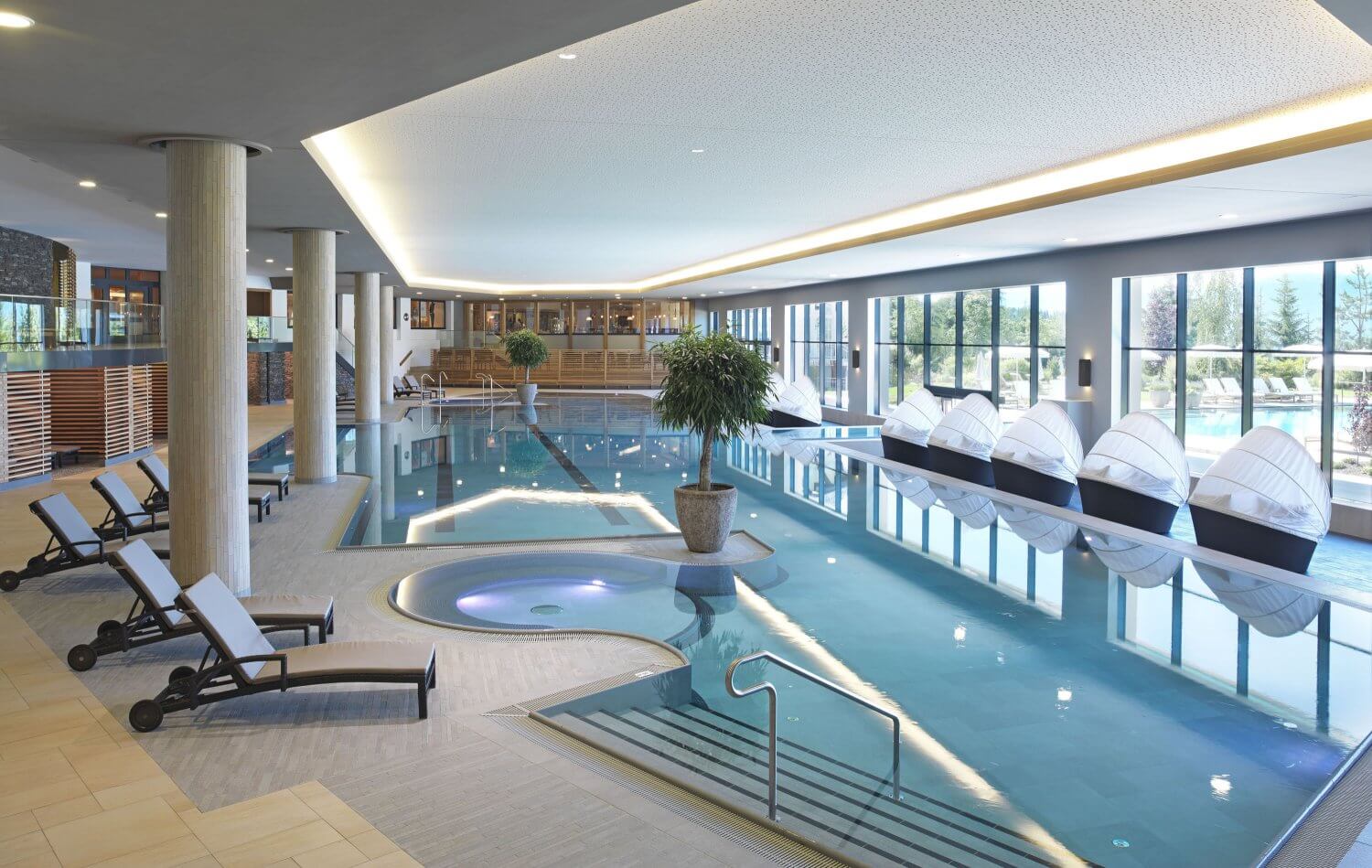 The hotel has 282 rooms (from 45 – 78 square metres) and suites (ranging from 82 – 120 square metres), a kitchen with 15 “Gault Millau Points” and 2 “Hauben” and 5’300 square meters of spa area. But that’s not all a kiddies centre, fabulous teen area with private cinema, an indoor putting green and golf simulator plus many other activities to choose from. There really is something to suit everyone!