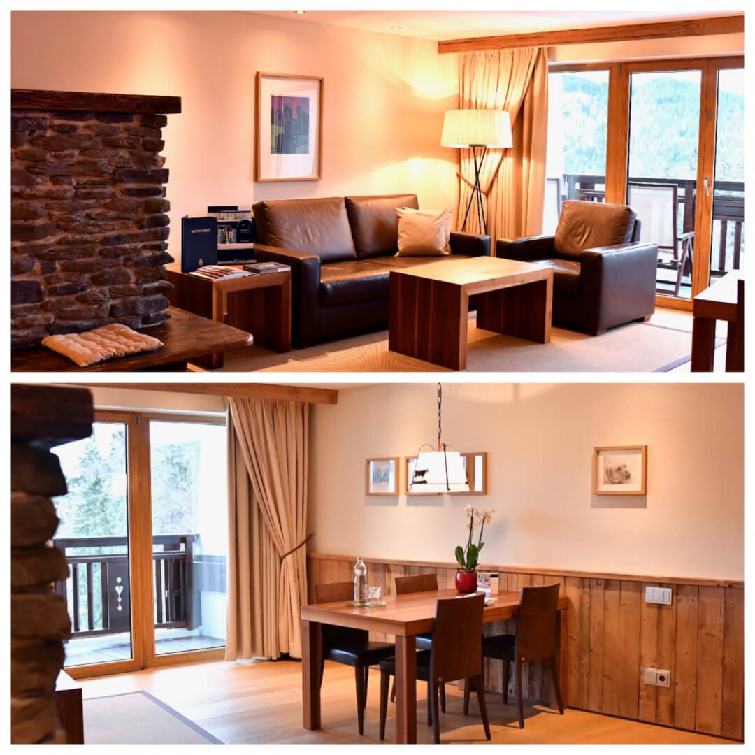 Every room has a balcony with mountain views. Ours was the “Doppelzimmer Deluxe”, 68 square meters with a separate dressing room that can double up as a child bedroom.