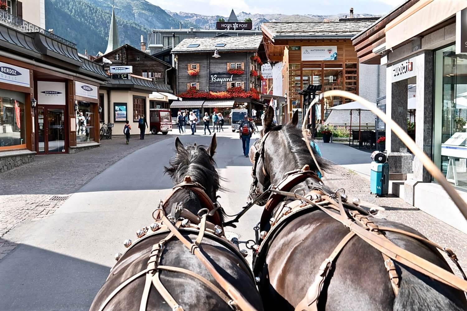 For those of you that have never been in Zermatt, it is a total car free zone. Arriving from the train I was picked up in the Mont Cervin Palace Hotel’s romantic horse and carriage. Talk about starting a trip feeling like a princess!