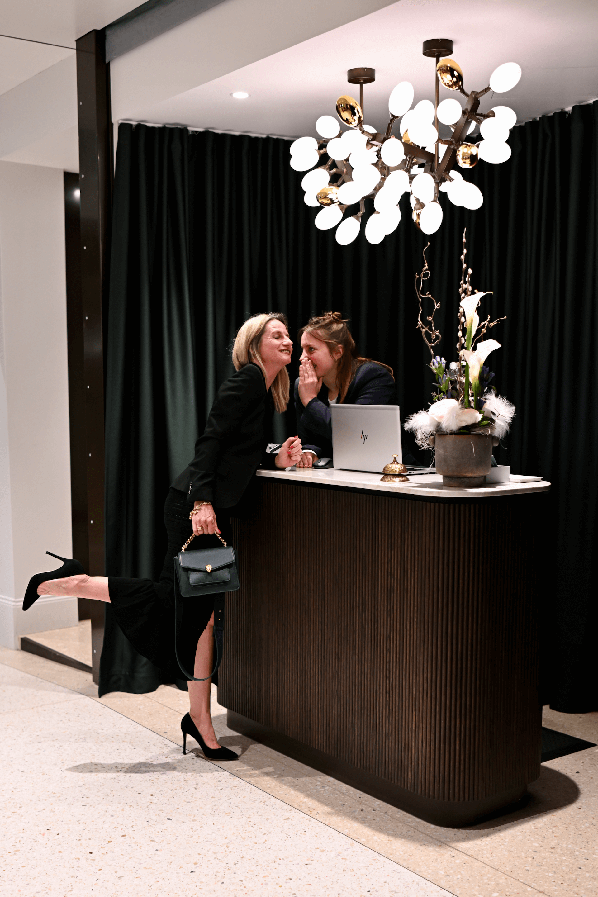 Stopping off to find out hotel secrets before we head into he dining room – smile!