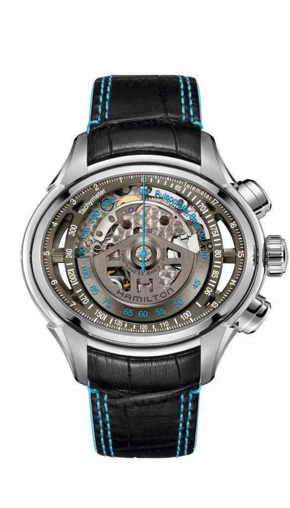 Going past their stand the Jazzmaster Face 2 Face II was too fascinating to simply walk past. Originally created in 2013 this year sees Jazzmaster Face 2 Face II with a 60 hour power reserve. The front has 30-minute and 12-hour chronograph counters as well as a day-date. The back features a pulsometer, tachymeter and a telemeter (calculates distances to a remote event, such as a lightning bolt).
