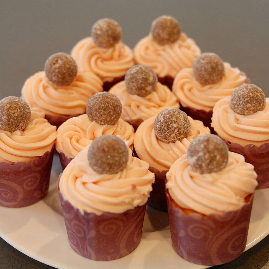 - Chill the frosting until firm enough to pipe and then top each cupcake with raspberry crystals.