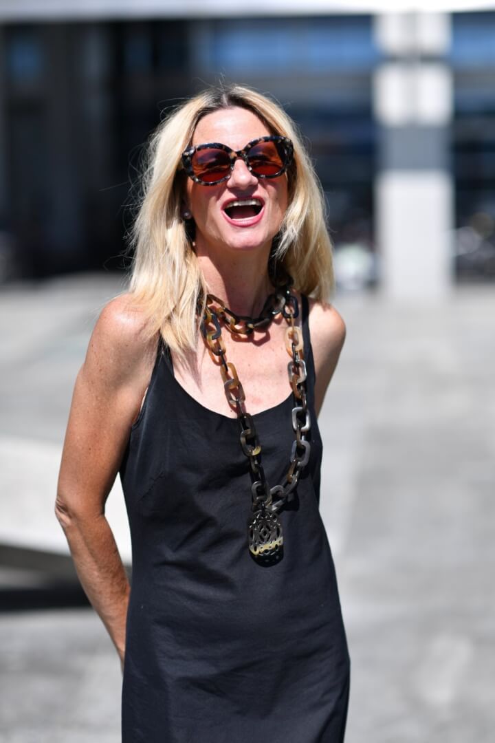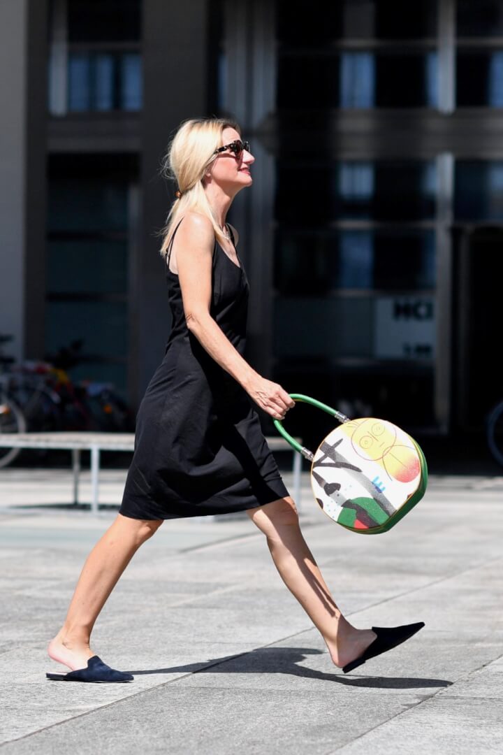 The simple black shift vamped up a little with necklace from Ronit Ziswiler, bag vintage Louis Vuitton, heels from G31 in Zurich.