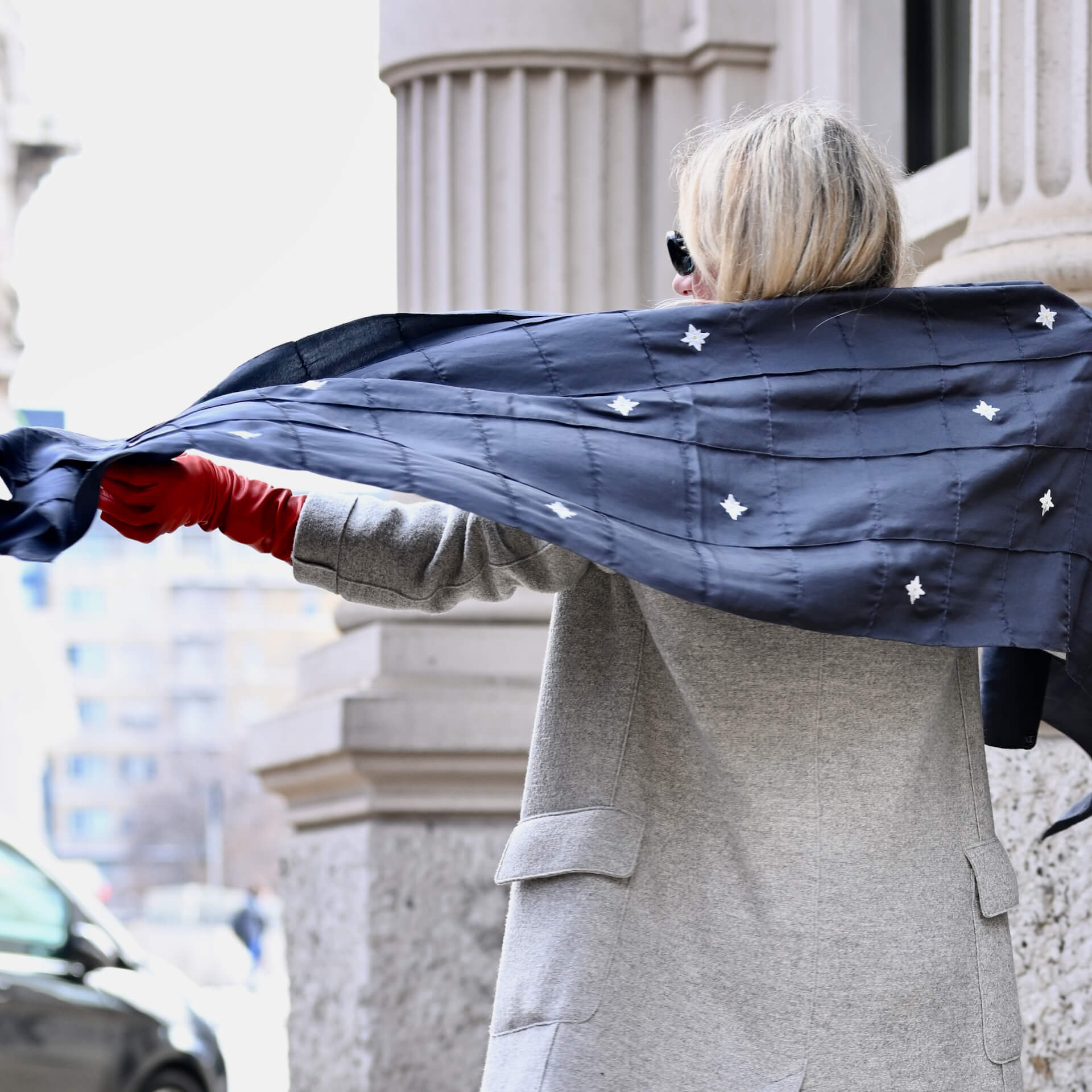 In light of this Jelena has started producing the most beautiful Swiss Silk scarves in collaboration with the Swiss Silk artist Andrea Gehri.