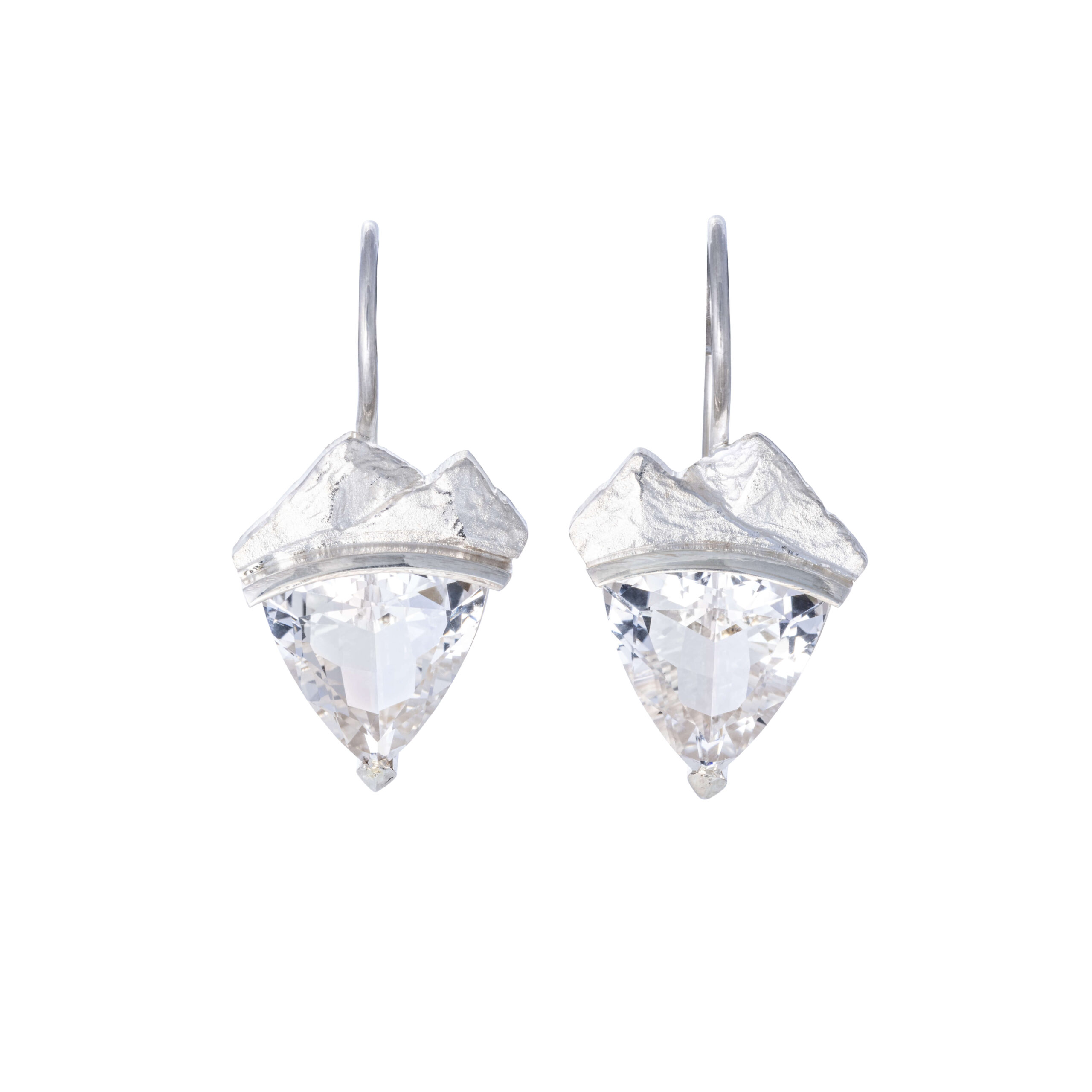 My ring and earrings both have a unique triangle-cut rock crystal from the Piz Beverin in Grison. They are in settings made out of certified ecological gold by a skilled goldsmith located in the heart of Zurich.