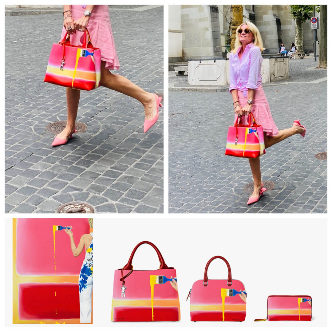 Visiting Paris one Fashion Week several years ago was when first came across a selection of wonderful bags by Caroline Dechamby – a Dutch self taught artist living in the wonderful Swiss mountain area of Crans Montana. We have been friends ever since.