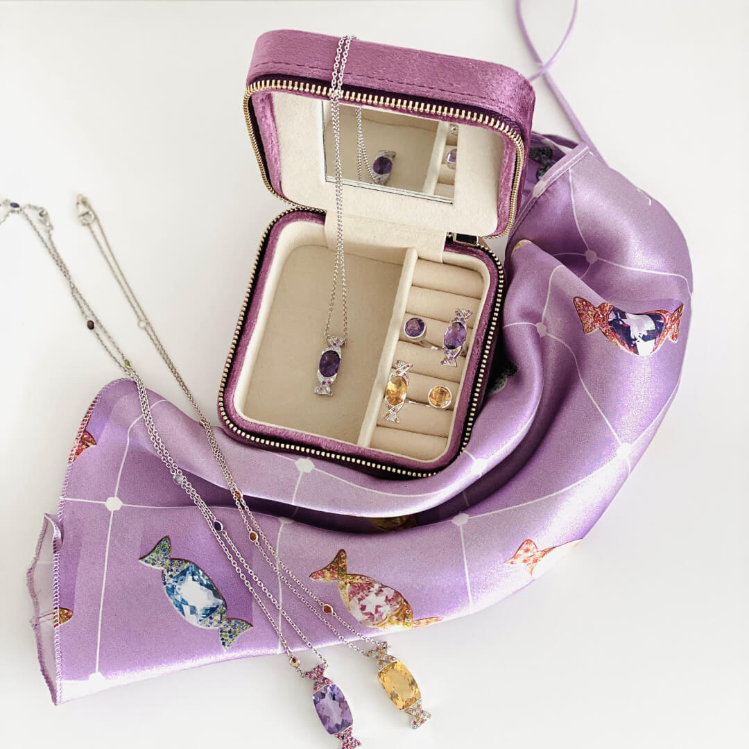 Moving along to my current candy jewellery love. Check out Vanessa Martinelli’s online store for the cutest collection of candy jewellery. Dress them up for out or wear at home. Not to forget her super cute matching silk garments.