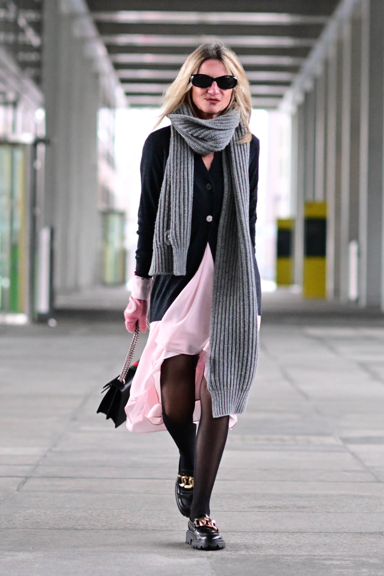 When it comes to wearing pink Summer weight fabric out on the streets my favourite is to team it up with plenty of charcoal grey knit.
