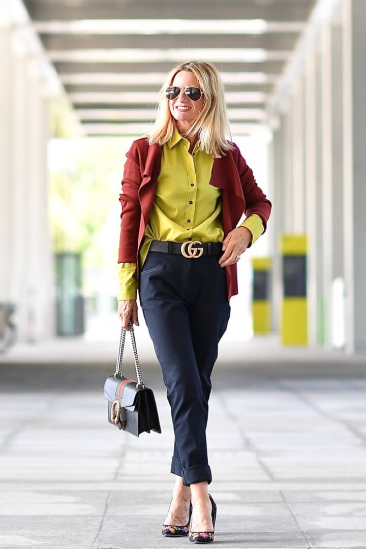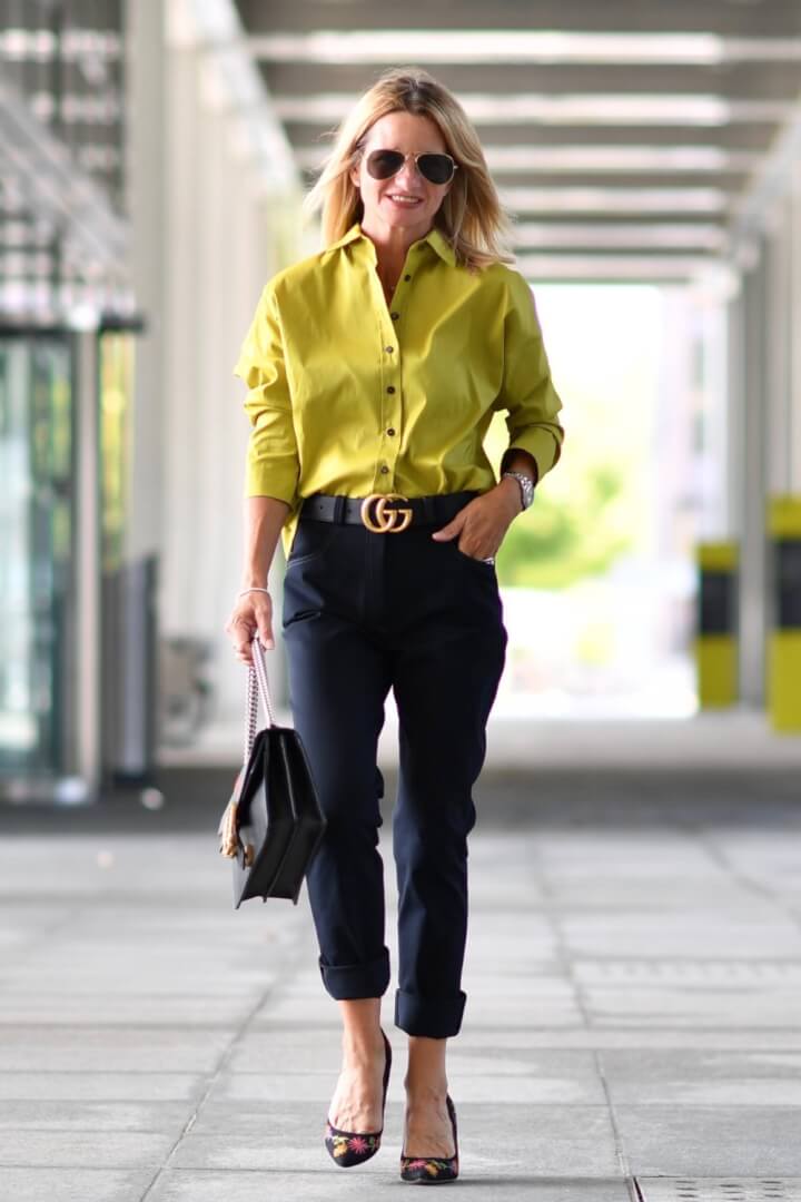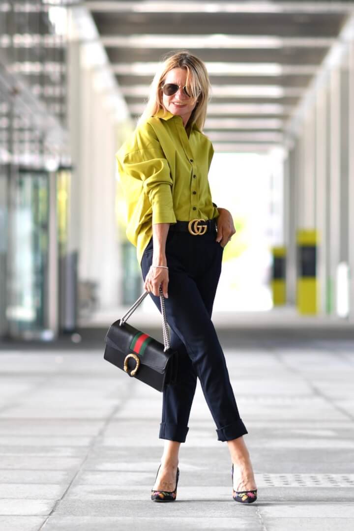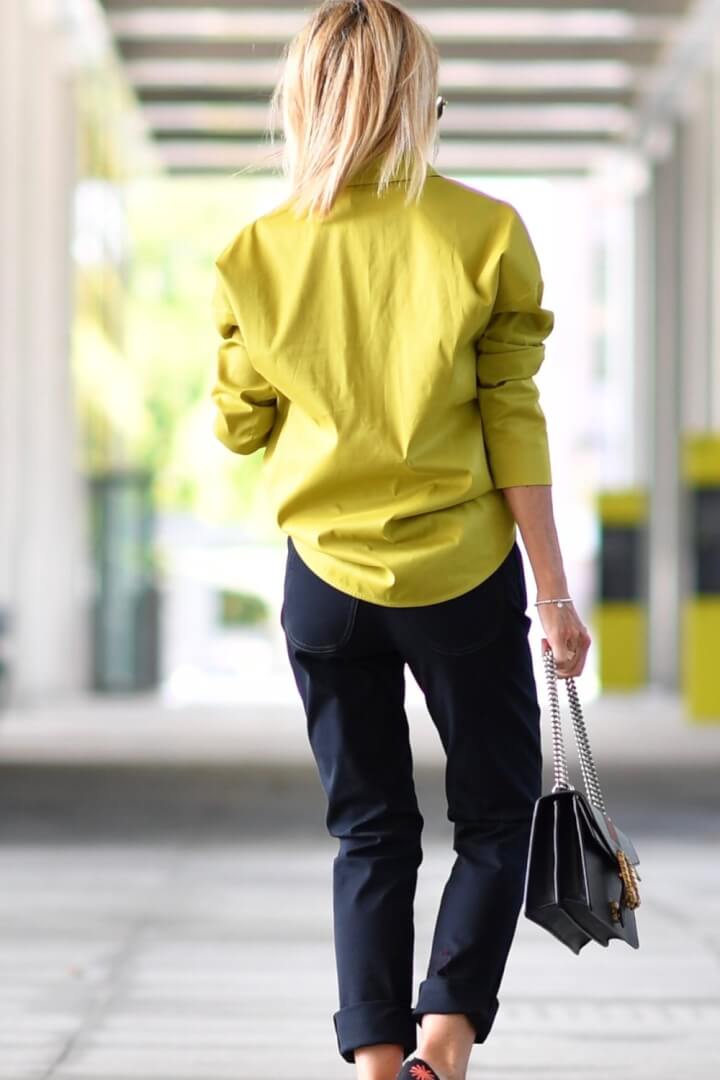 Colour blocking works for even the most conservative of wardrobes and can be super effective if you go for a new colour. Both yellow and the lime green of this shirt will be featuring large this Fall – why not have a play and see what the colour looks like on you.