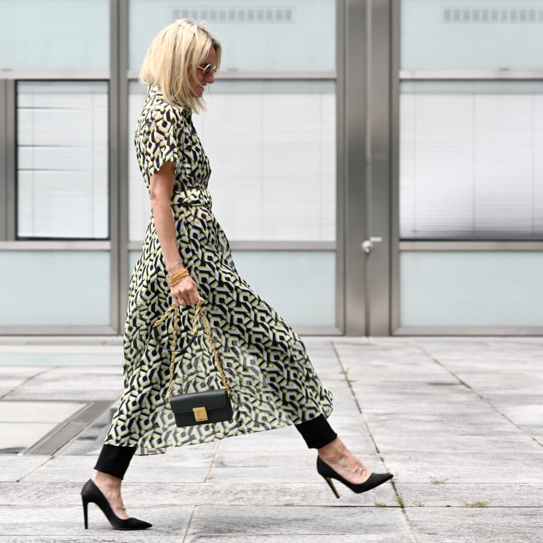 If you work in an office you might like to team it with flat ballerinas during the day. Truly also the perfect office dress.