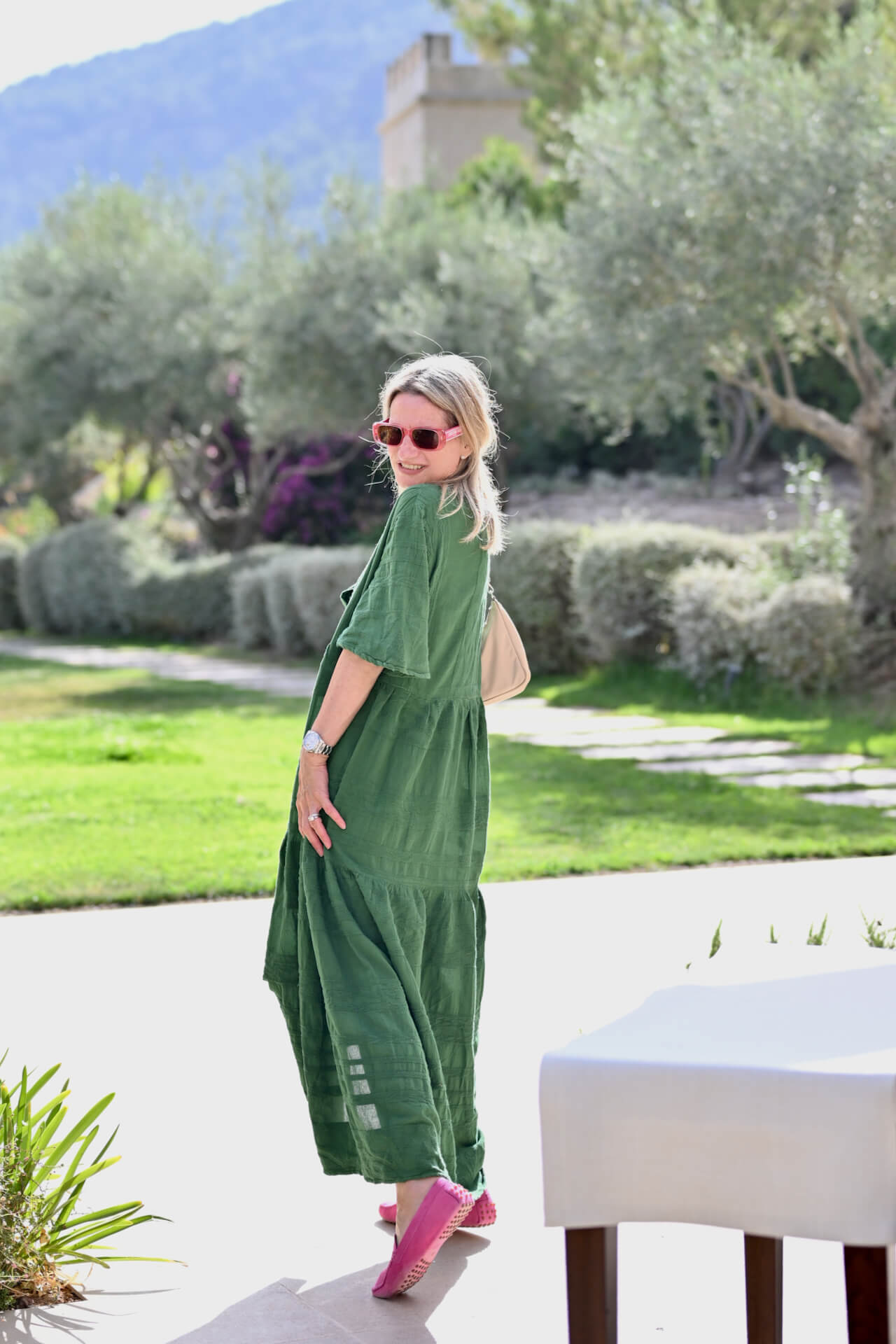 This lovely green maxi dress with pink moccasins was my perfect goto for the trip.