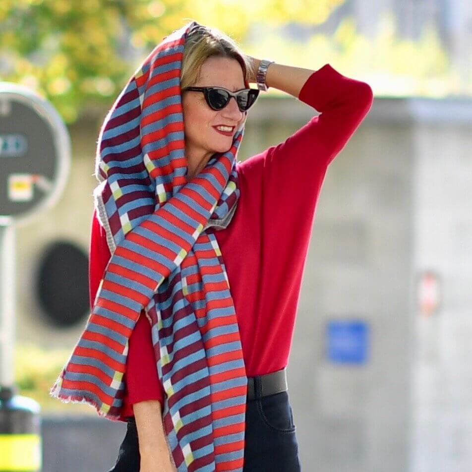 sorry in deutsch: toller Input – werde versuchen ein paar Dinge umzusetzen. Mehr mit dem Schal spielen und auf farbenfrohe Stücke freue ich mich sehr.