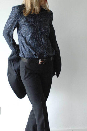 All clothes with exception of white shirt and necklace borrowed from Modissa – my favourite place in Zurich for buying corporate clothing – super nice changing rooms and I love the way the people working there keep on coming with new suggestions / options without me having to make that embarrassing (often half naked) step back into the shop floor – smile.