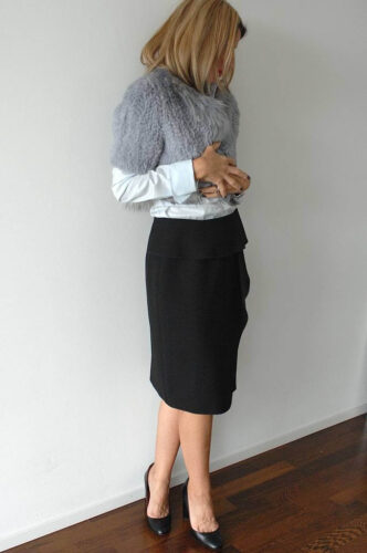 Skirt and Top BOSS, Fur from Modissa, Boots L.K. Bennett and court shoes Zara.