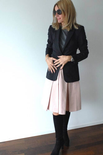 Depending on the office mood I will either wear the fur jacket all day or wear the blazer during the day and switch to the fur jacket in the evening.