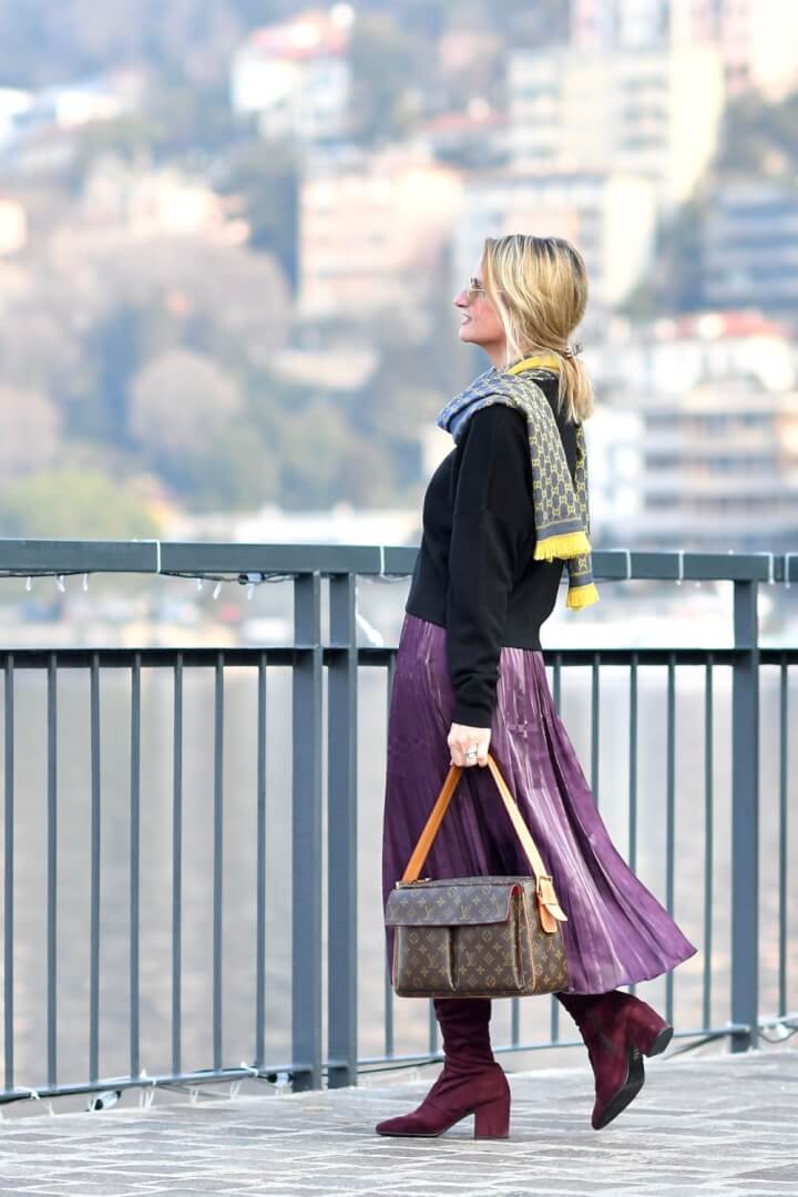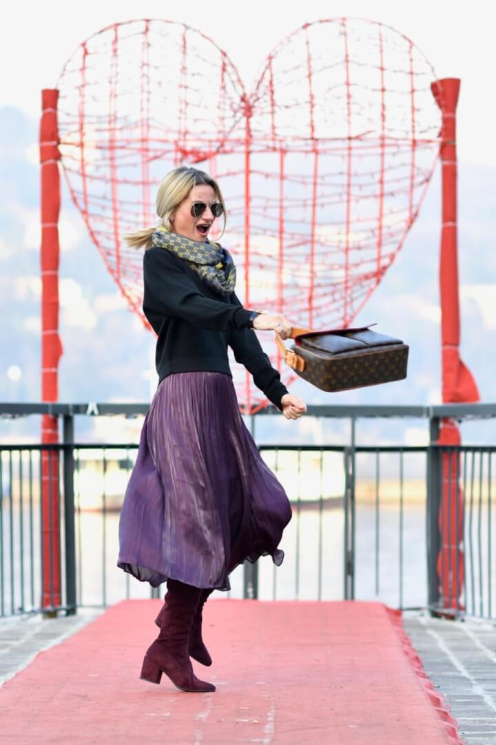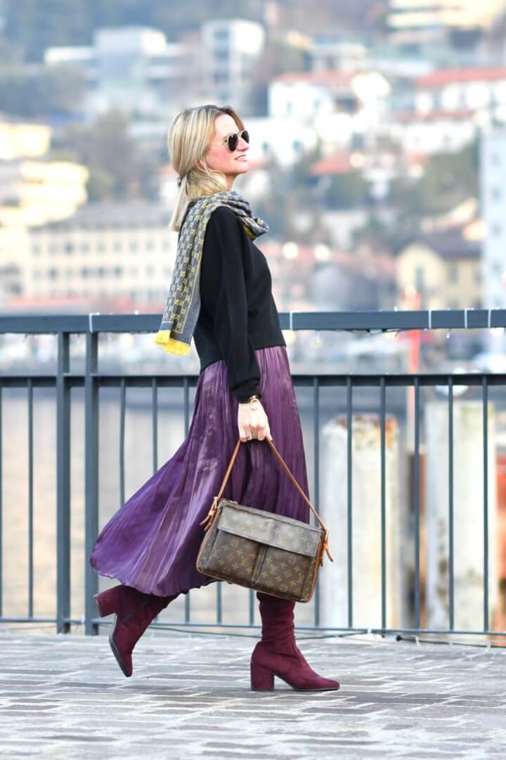 Violet is one of my most favorite colors. I am dying to wear it lots, this year. Your skirt is gorgeous and your street style is fabulous as always. I also featured you on my blog a couple of weeks ago when you wore that orange-red midi dress, Yvonne. Always looking fantastic. Happy 2018!!
