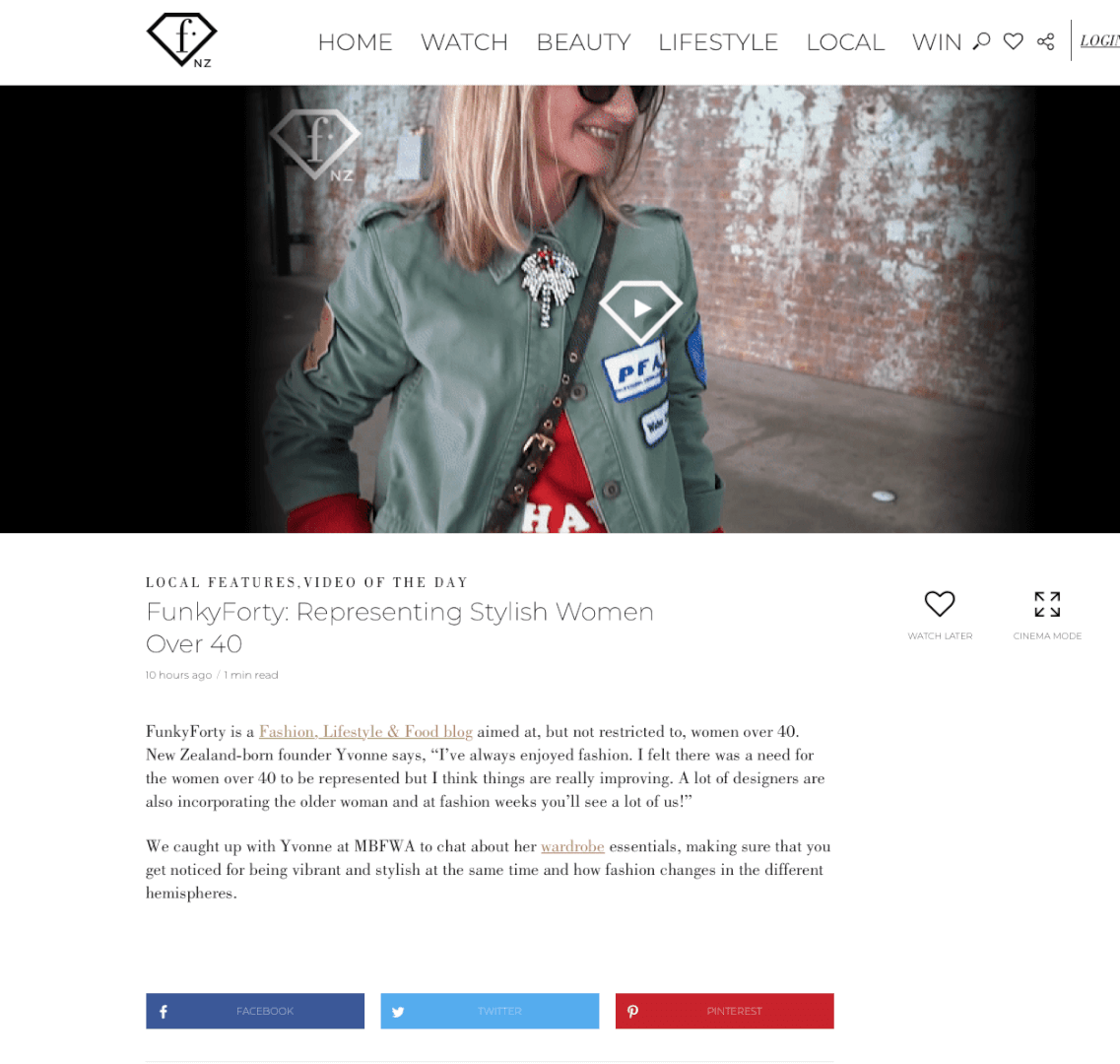 Fashion TV New Zealand – Interview Interviewed by Fashion TV New Zealand Whilst at Sydney Fashion Week – MBFWA An on the fly interview about the Woman over 40, comparing different Fashion Weeks and current Fashion essentials… Click here to view FunkyForty Hi! I’m Yvonne, a 40 something (wink) Kiwi, living in Zurich. I love fashion, travel, shopping and food – believing chocolate will cure almost anything! Previous Article Gala Magazine - April 2018 Next Article Geberit Magazine No Comments Yet Leave a Reply Cancel replyYour email address will not be published. Save my name, email, and website in this browser for the next time I comment. Δ