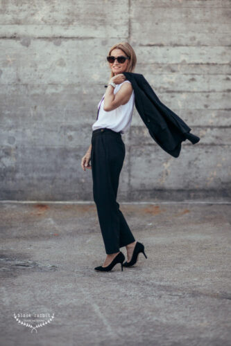 I bought these Rue Blanche Trousers in eclectic and simply combined them with a vintage Boss jacket – as they are both wool you could never tell they weren’t an actual suit from the start – excellent (cost cutting and being trendy all in one!).