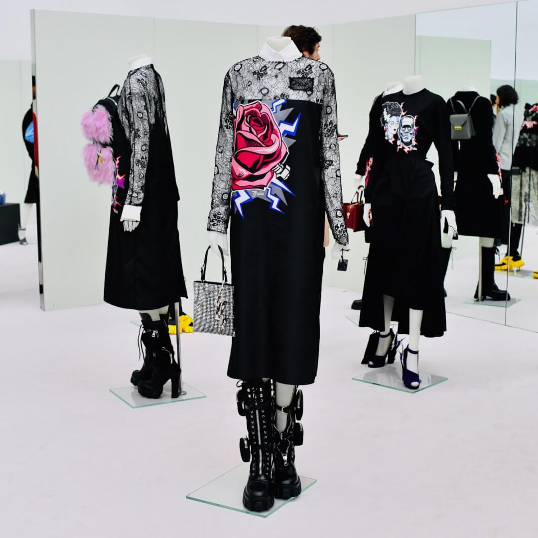 Miuccia Prada is an incredibly creative person and in the past Prada collections have been an absolute wow with regard to innovation and eye-catching trends. She is however a serious person and right now very concerned about European conflicts and the threat of war more generally. As a result the Prada Fall 2019 collection is all about romance. The two sides to romance, the beautiful and the dark side. Featuring Frankenstein in her collections.