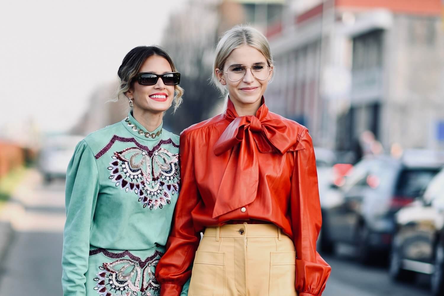 Gucci saw it’s muses featuring pattern mixes whilst the rest of the fashion crowd is moving more towards plain fabrics or asymmetrical patterns. Beautiful flouncy blouses with big bows at the neck floated down the streets as did plenty of suede or leather neutral toned jackets.