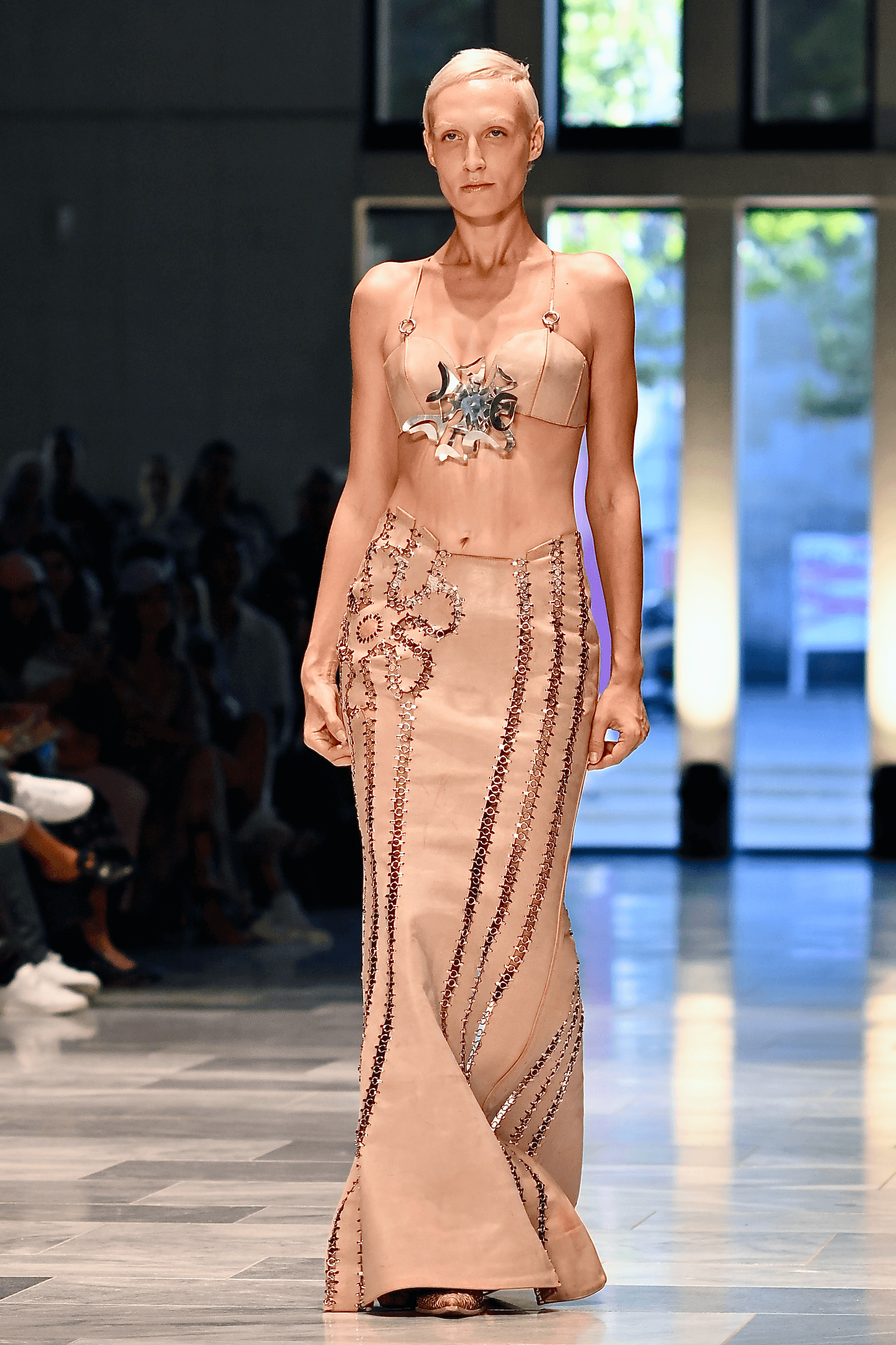 One of my favourite collections was that from Mara Danz who returned back to Glarnerland, Switzerland after a 2 year stint working for Maison Margiela in Paris. Starting her label in 2021. I loved the name of her collection “If you don’t let us dream, we won’t let you sleep”. With that in mind her collection was full of fabulous prints and futuristic designs which could almost be out of a science fiction film. (Highlights from her collection pictured further down).