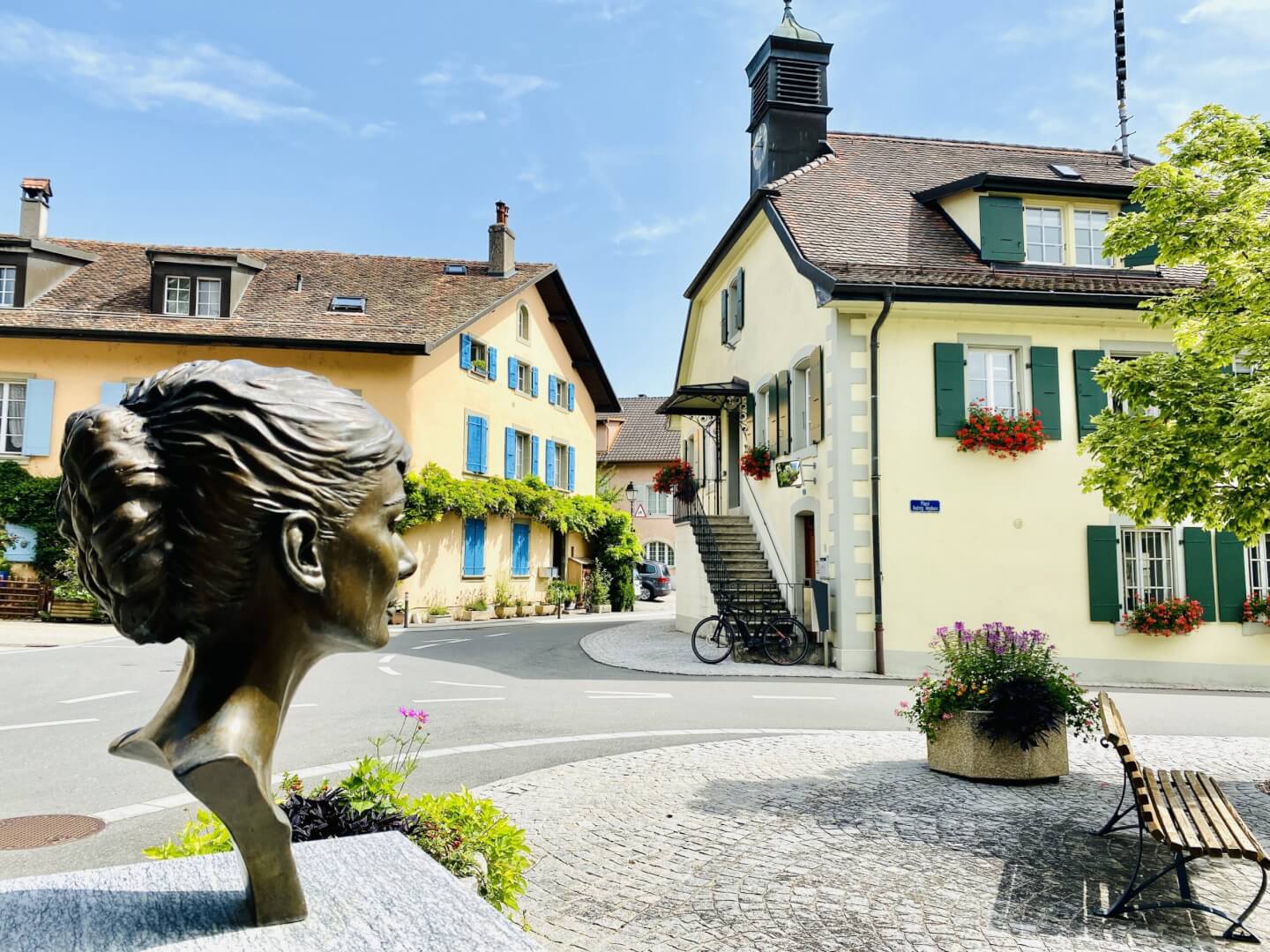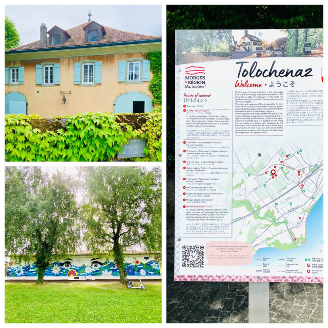 Audrey Hepburn lived in a little village just outside of Morges called Tolochenaz. There is a local bus which will take you up to the village or you could do as I did and take an e-scooter up to discover the village, find the house where she raised her children and even visit her grave and the pavilion especially built in loving memory.