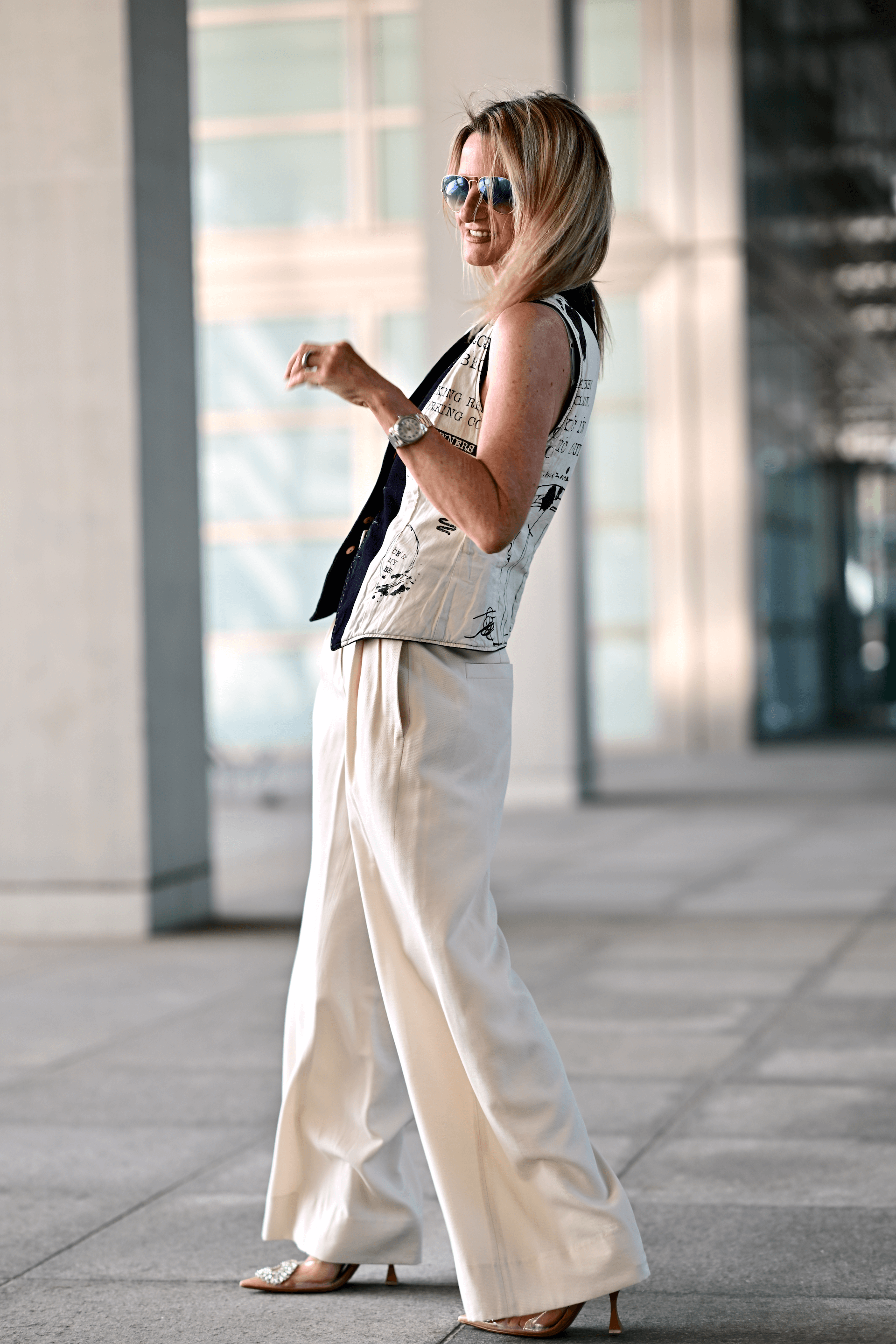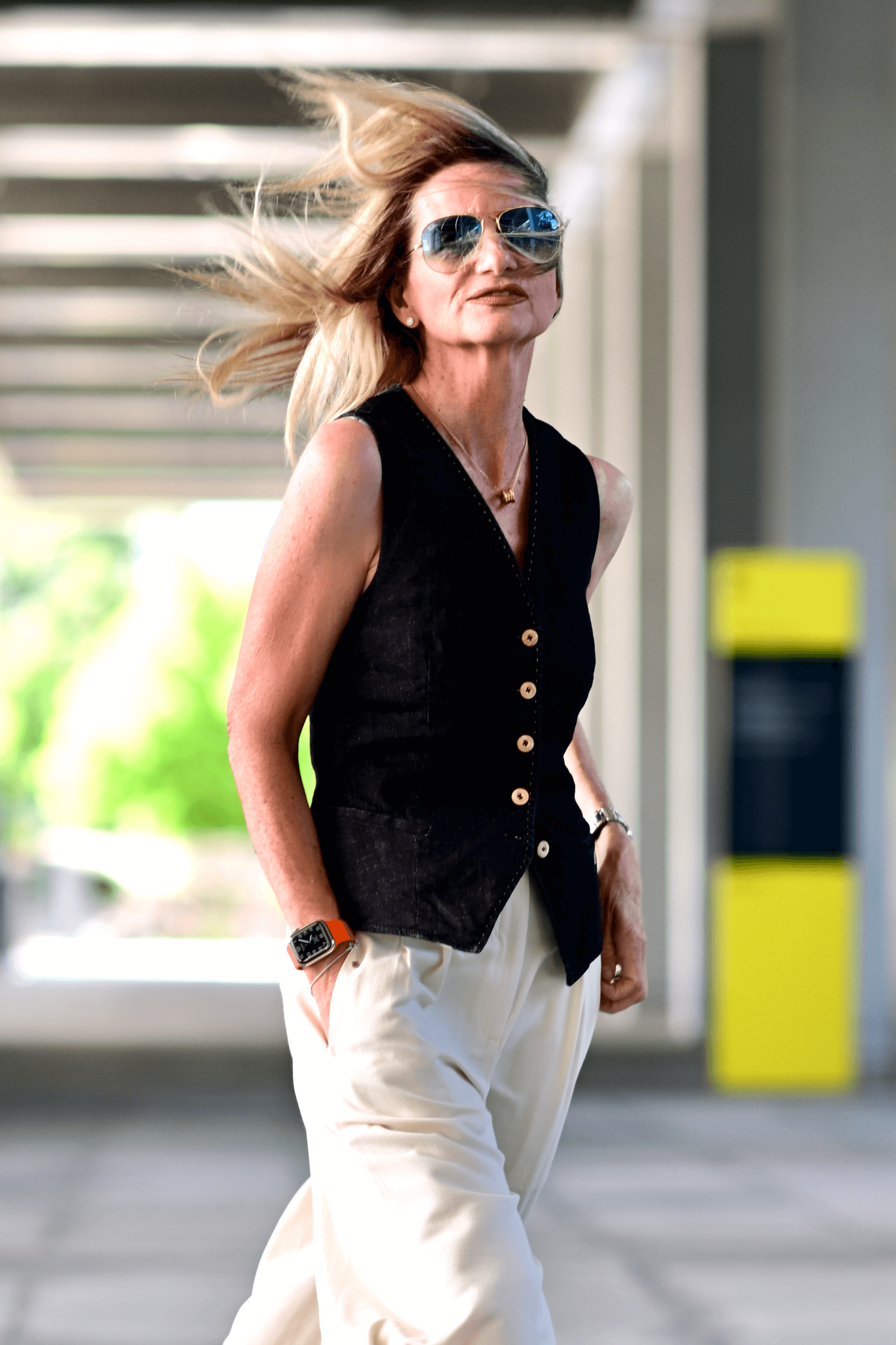 As a side note – vests are currently a very hot item and really belong in every woman’s wardrobe for Summer 2023 – smile!