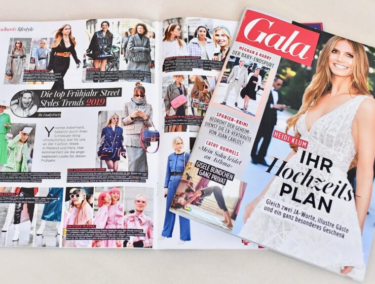 November 2018, Street style photos taken by FunkyForty during the September/October 2018 Milan and Paris Fashion Weeks published in “Gala Schweiz” magazine.