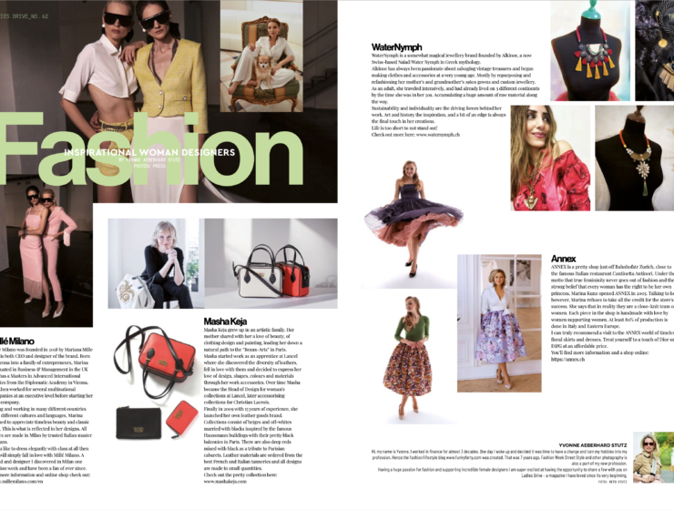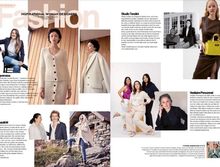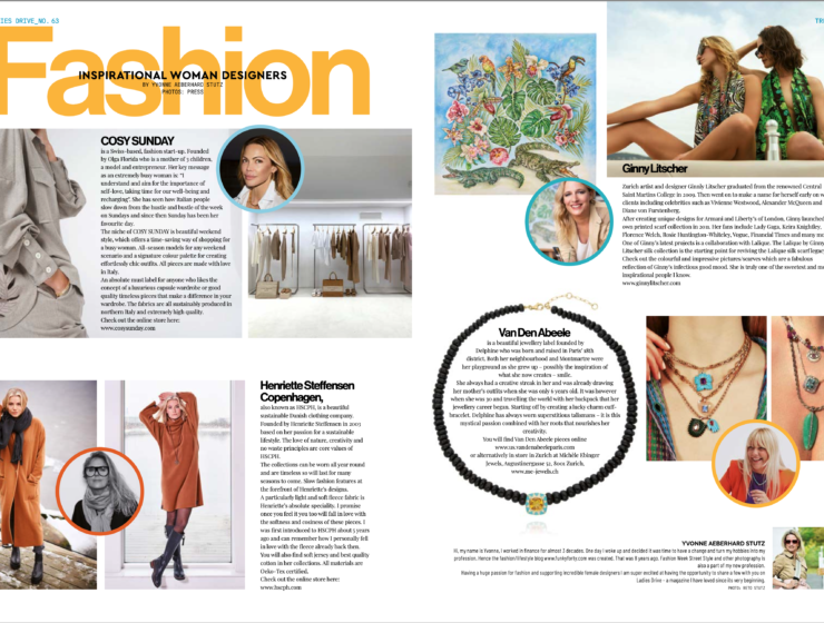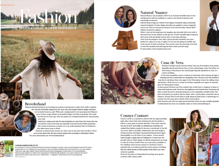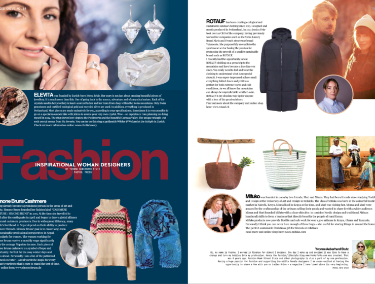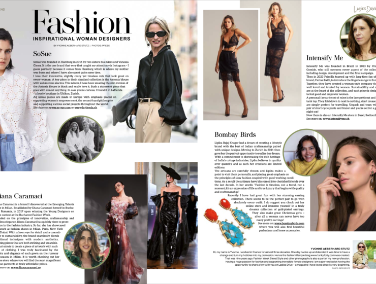 Ladies Drive Magazine – December 2024 Read up about this quarter’s 4 female fashion designers, from Switzerland to India with love: SoSue – a lovely venture founded by two sisters in Hamburg…