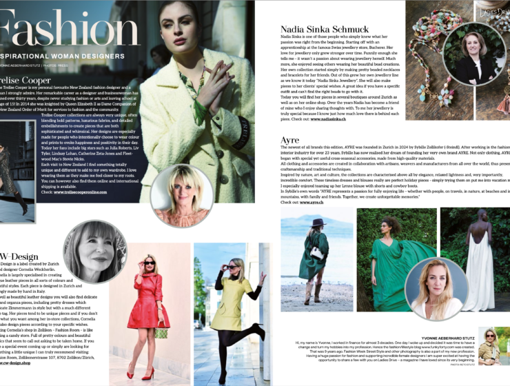 Ladies Drive Magazine – March 2025 Read up about this quarter’s 4 female fashion designers, from Switzerland to Australia with love: Trelise Cooper– one of my favourite Kiwi designers. CW Design –…