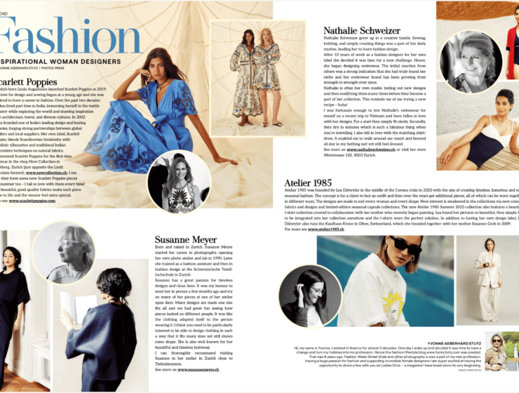 Ladies Drive Magazine – June 2025 Read up about this quarter’s 4 female fashion designers, from Switzerland to Australia with love: Scarlett Poppies Susanne Meyer Nathalie Schweizer Atelier 1985 Do check…