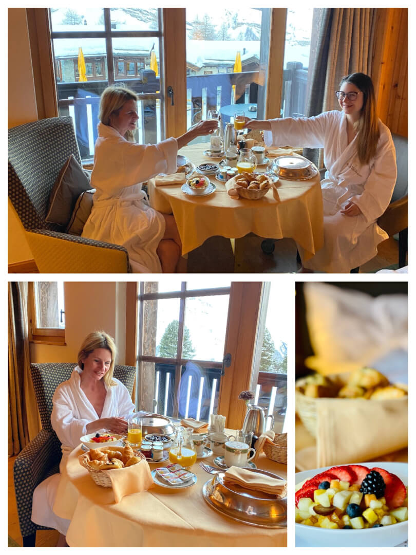 We had a Matterhorn Superior room – approx 40 square meters with balcony and the best Matterhorn view ever. I loved the super comfy beds and pretty interiors with a rustic touch yet most up to date facilities. The bathrooms too are super nice with a lovely mix of grey marble and rustic wooden ceilings.