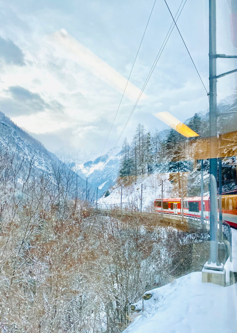 Zermatt is totally car free so you may take the train from Visp or Täsch. Visp – Zermatt is a super pretty 1 hour train trip through the mountains so be prepared to have your breath taken away here.