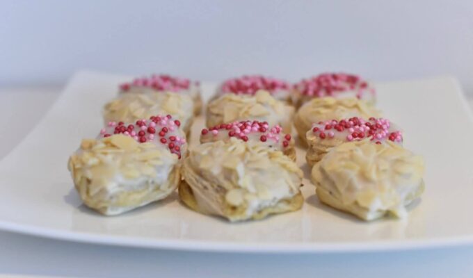 - After baking instantly baste the stollen with melted butter and coat with regular sugar.