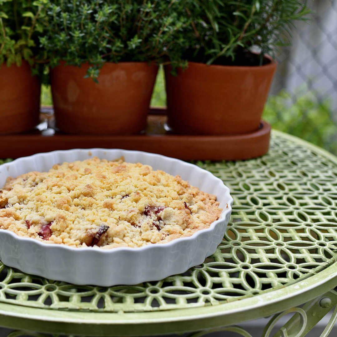 The original recipe used plums which I exchanged for peaches but I also once made this with blueberries – so use whatever fruit you have or a combination of your favourites – anything goes!