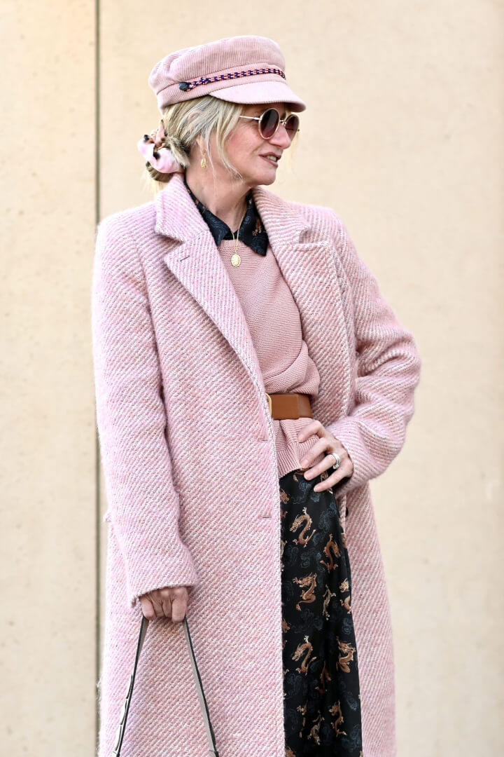 I’m not saying you can’t wear pastels on grey rainy days. However I am saying you need to be careful as it can go wrong. The solution is easy. All you need to do is team your pastels with a darker colour. I have a few more tricks too these days..