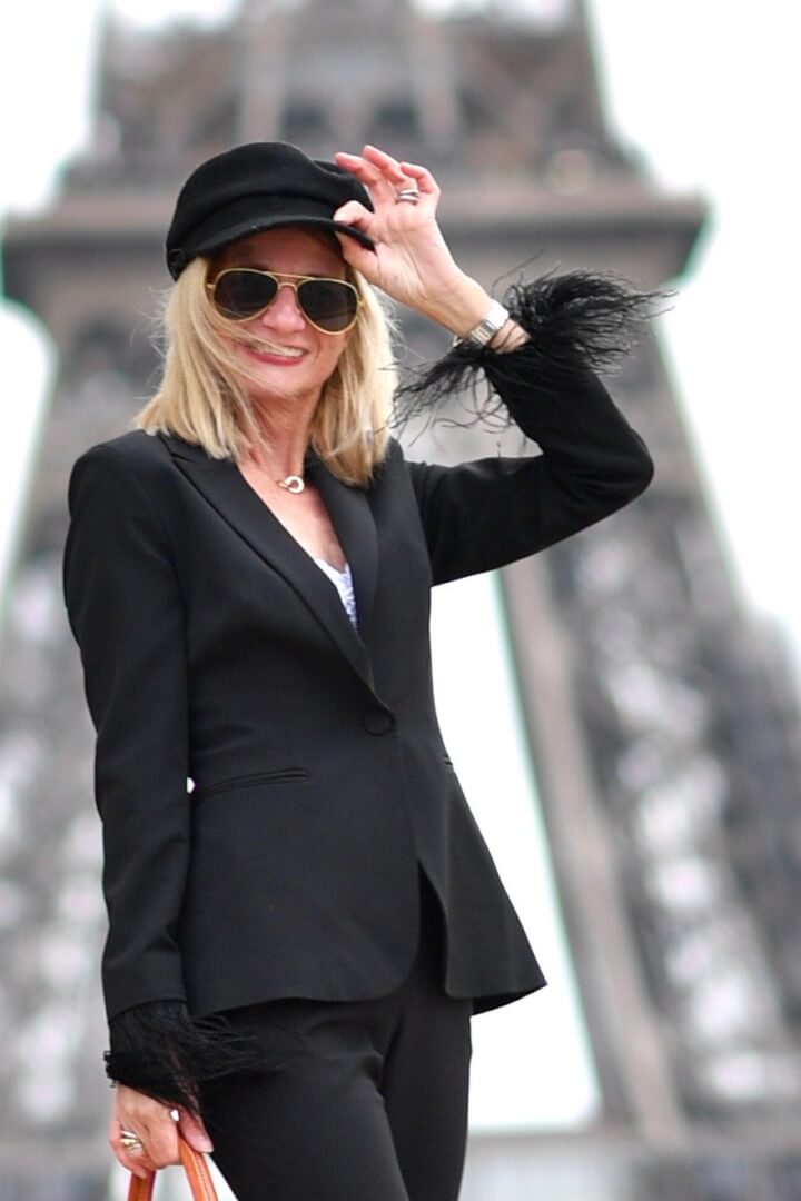 Love the feather trim on both sleeves and pants. Not quite the same as those on the Dior suit shown above but similar enough for me!