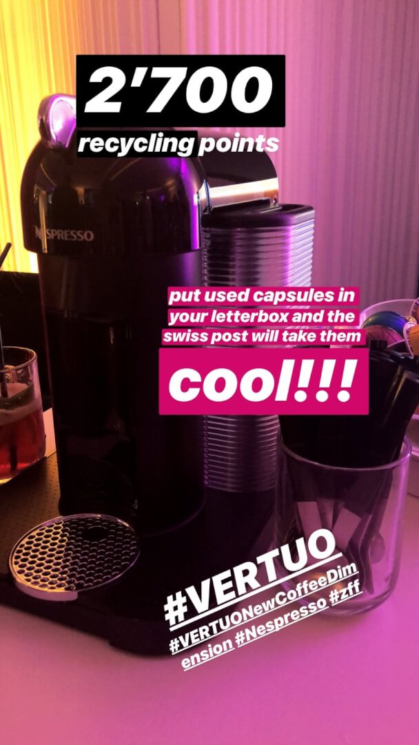 The new VERTUO coffee capsules are also made out of aluminium and 100% recyclable. The new VERTUO coffee machine was officially launched in Switzerland at the Zurich Film Festival. This was also where I learnt about the impressive 2’700 recycling points for Nespresso coffee capsules.
