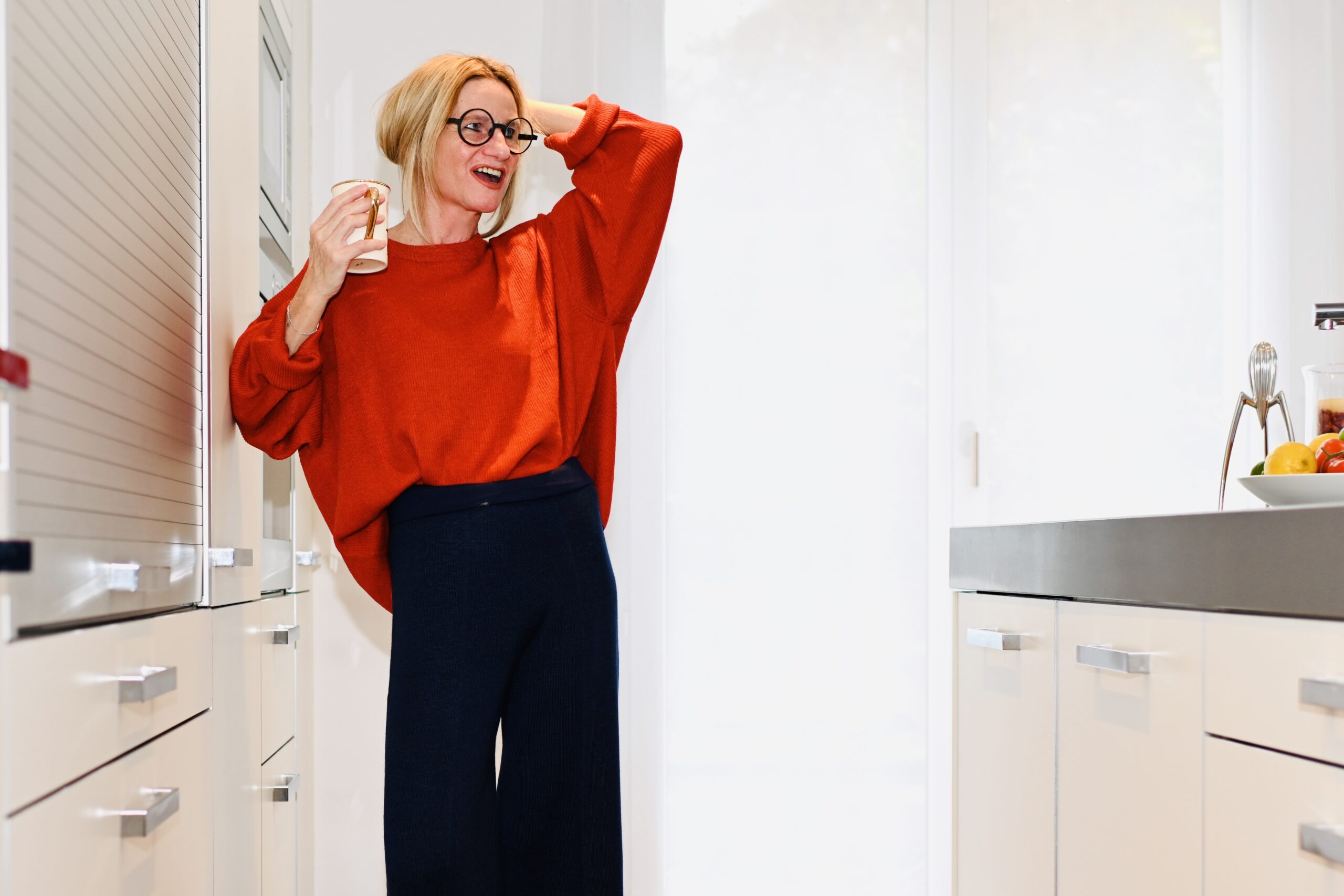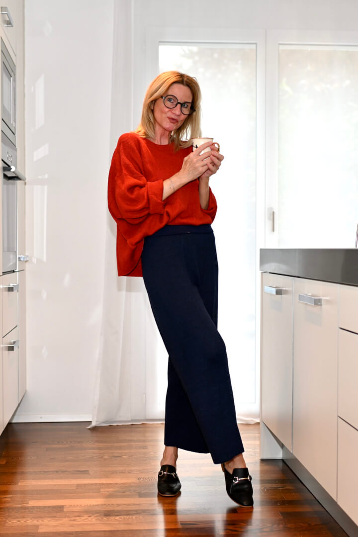 Both the sweater and pants are Aqvarossa, totally stretch and made from alpaca wool. I like to wear the outfit like this when I don’t have a zoom call.