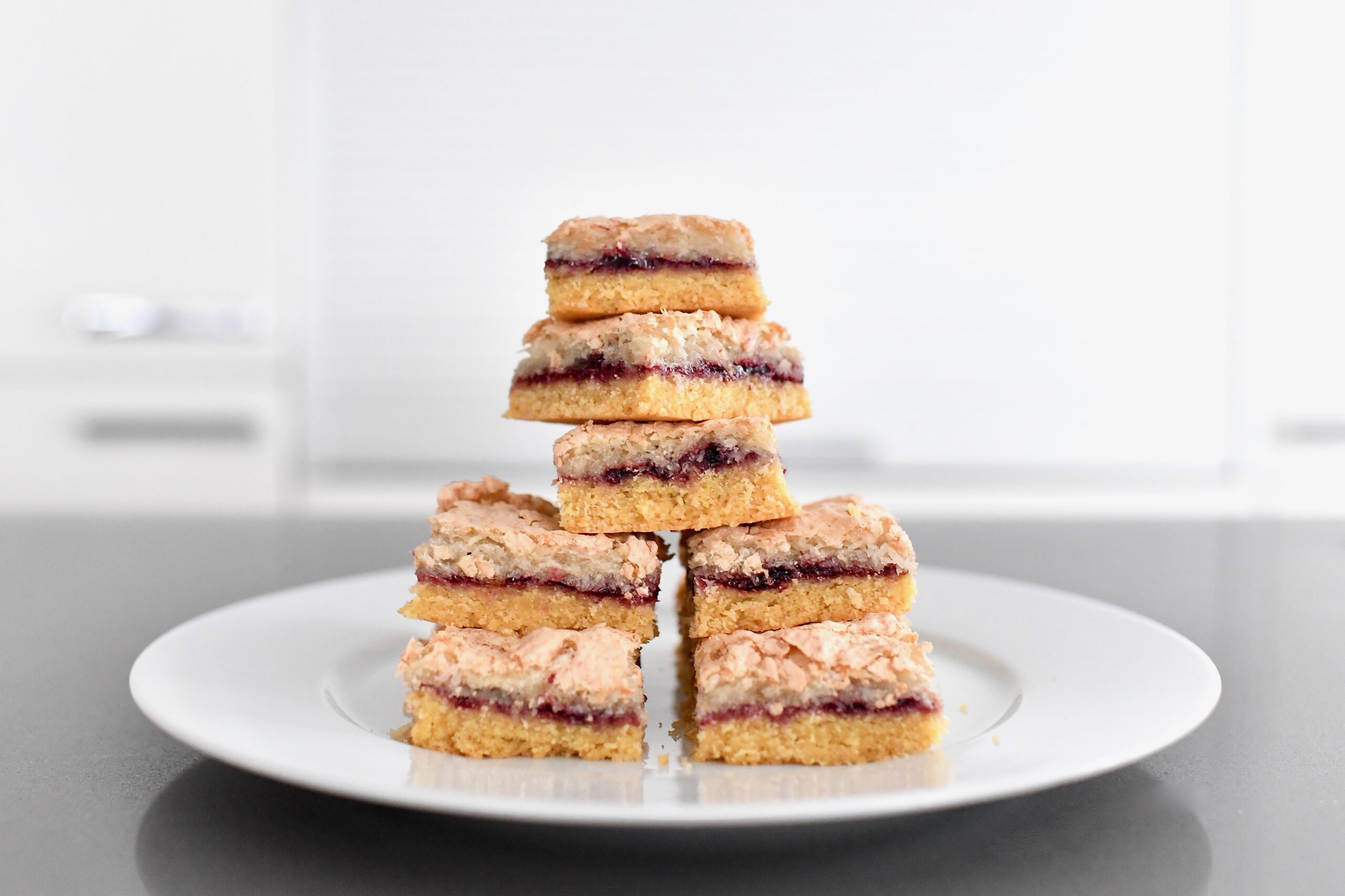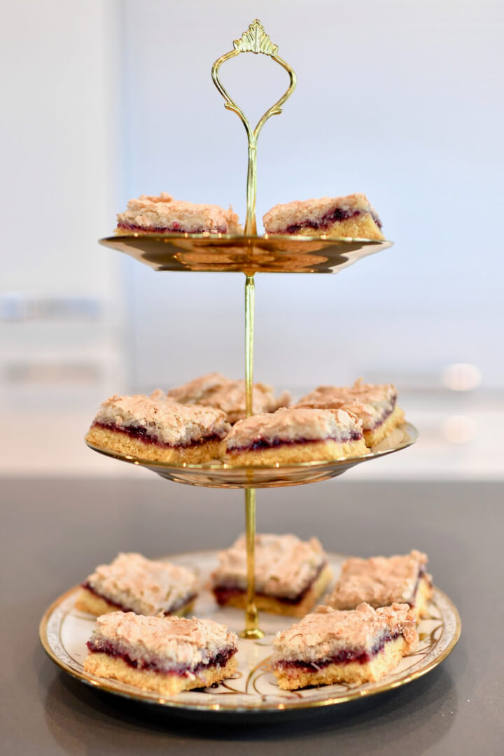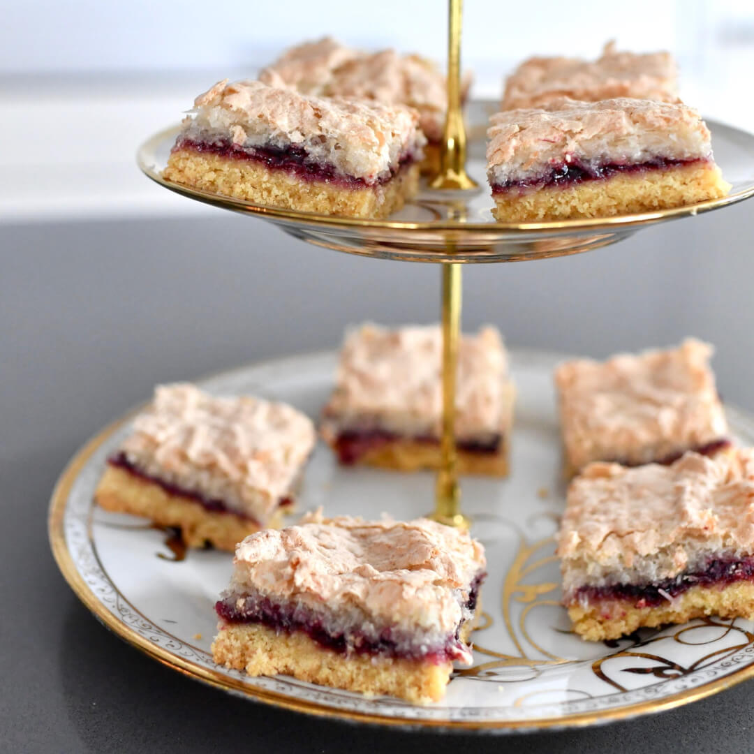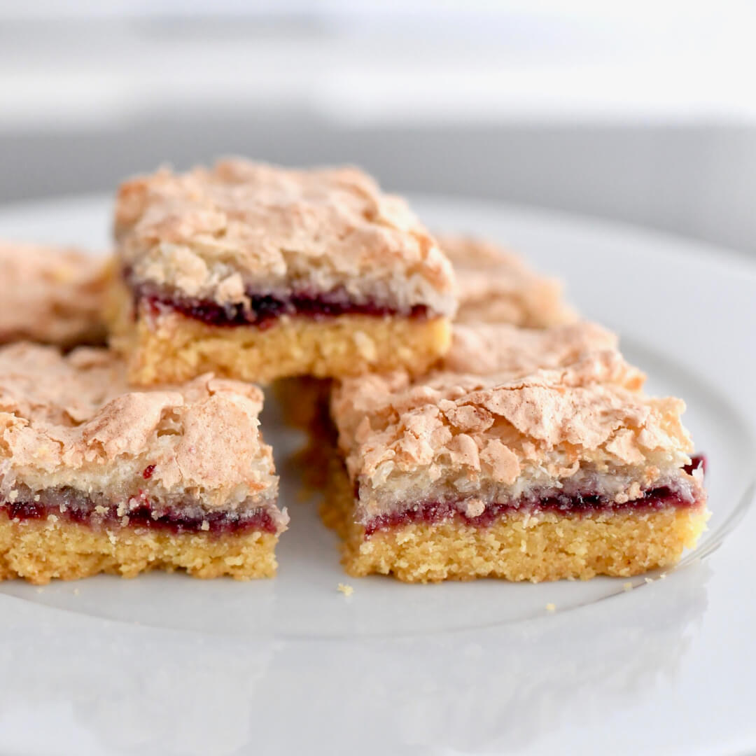 This recipe really reminds me of New Zealand, (hence the title “Kiwi Louise Slice”), especially as you will find a Louise slice available in most cafes there.
