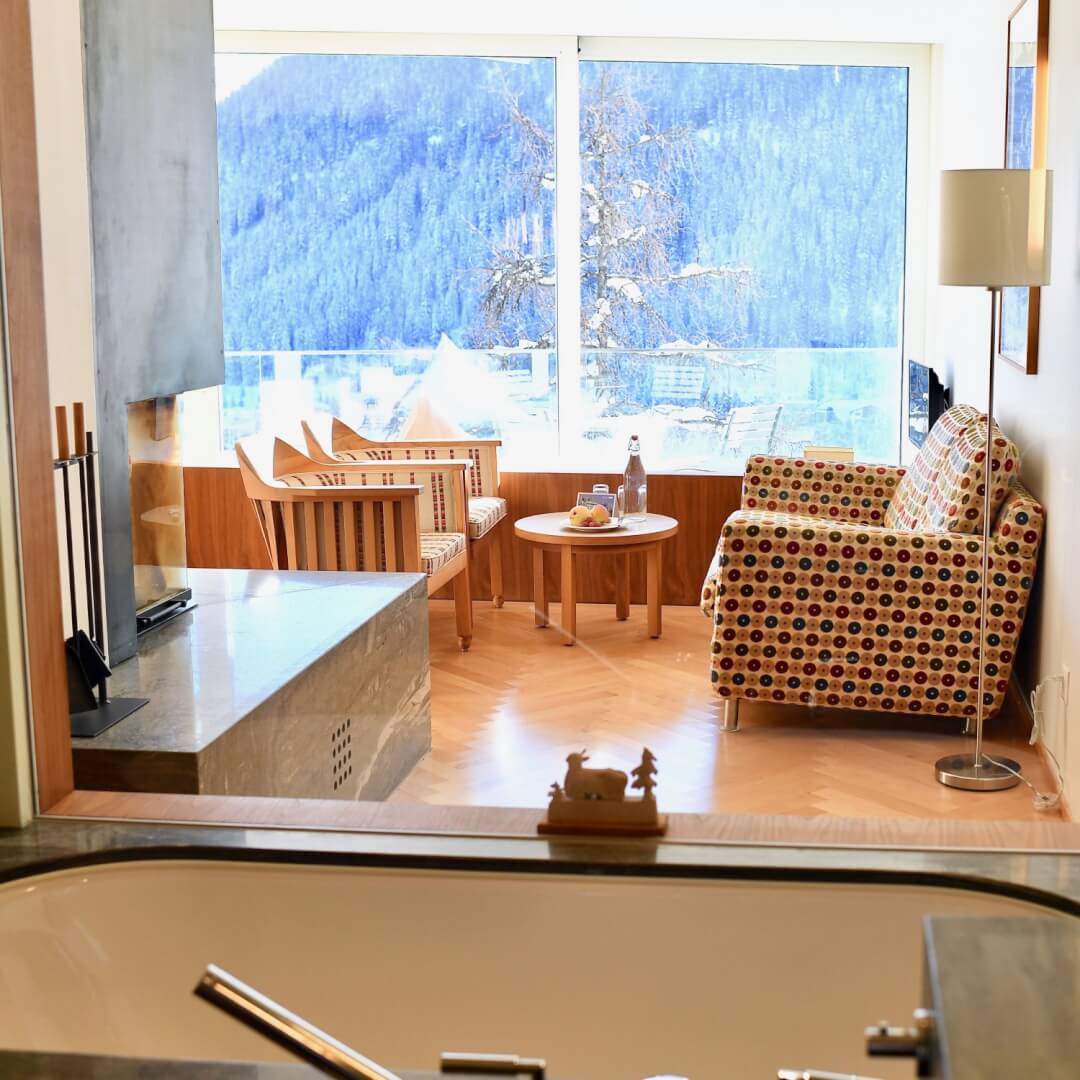 There are 46 rooms with 9 different room categories. Most of them are south facing with fabulous views over Davos.