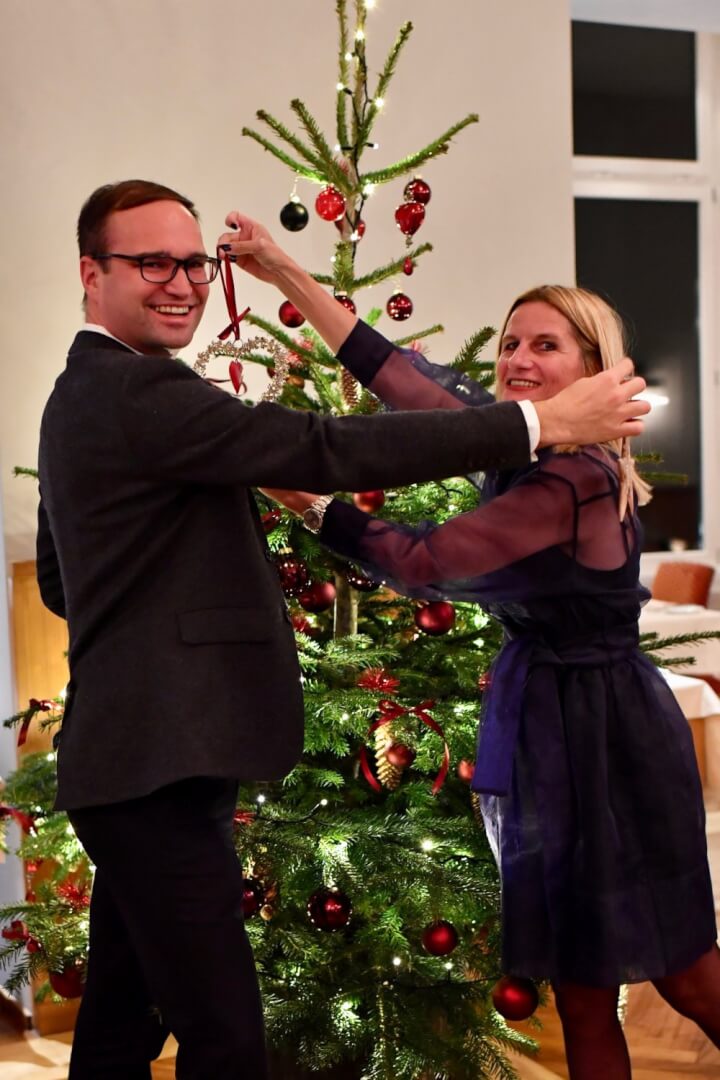 Decorating (or un-decorating) the Christmas tree with Raphael!