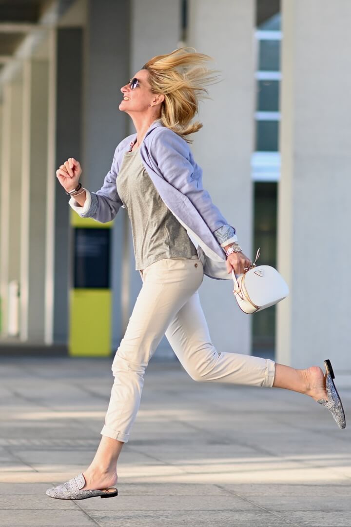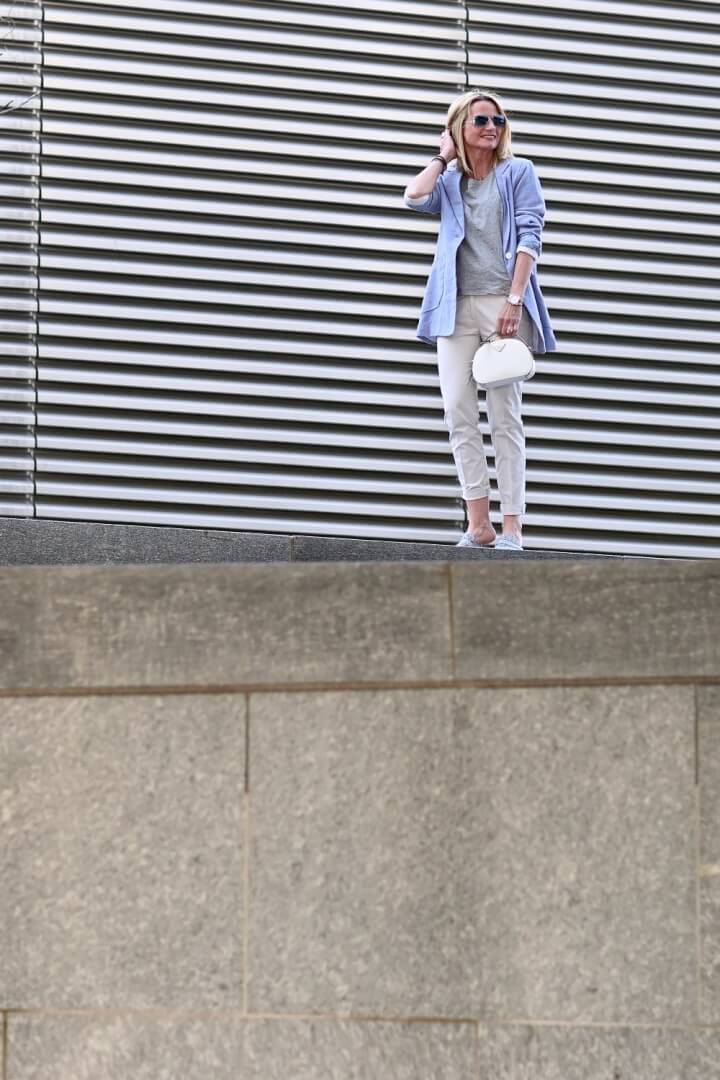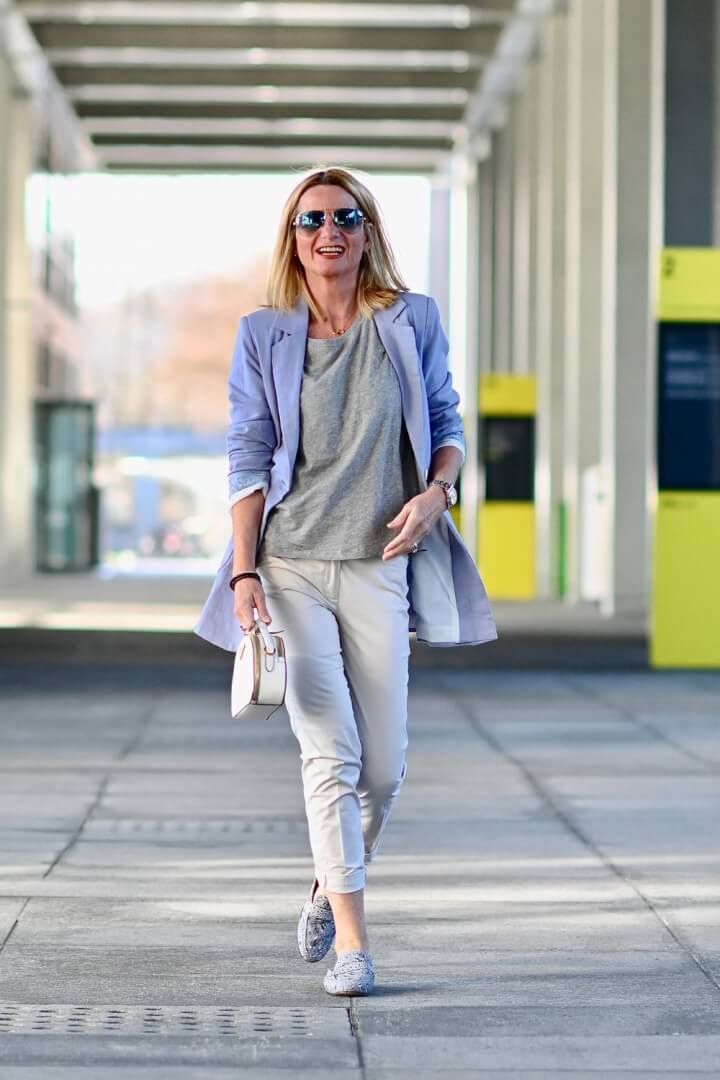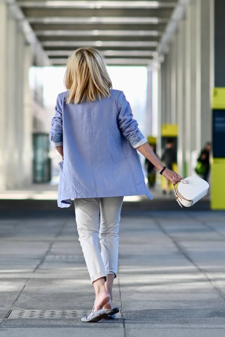 Jacket length – in particular for Spring 2019 the longer or even oversized jacket is definitely trending. Try one that’s even a little longer than in the photo. Unless you don’t really have hips, shorter jackets can look unfortunate.